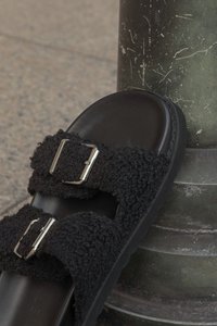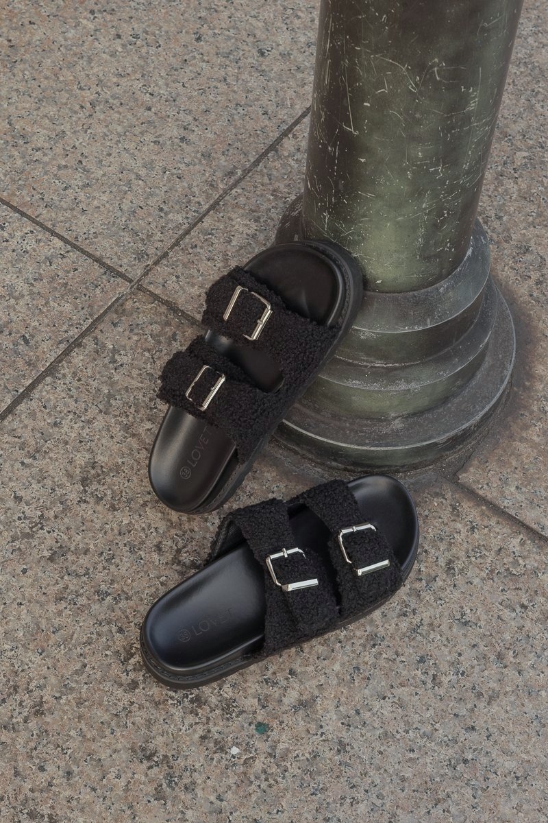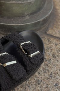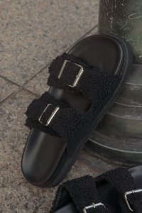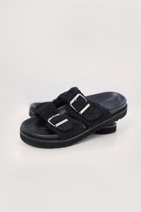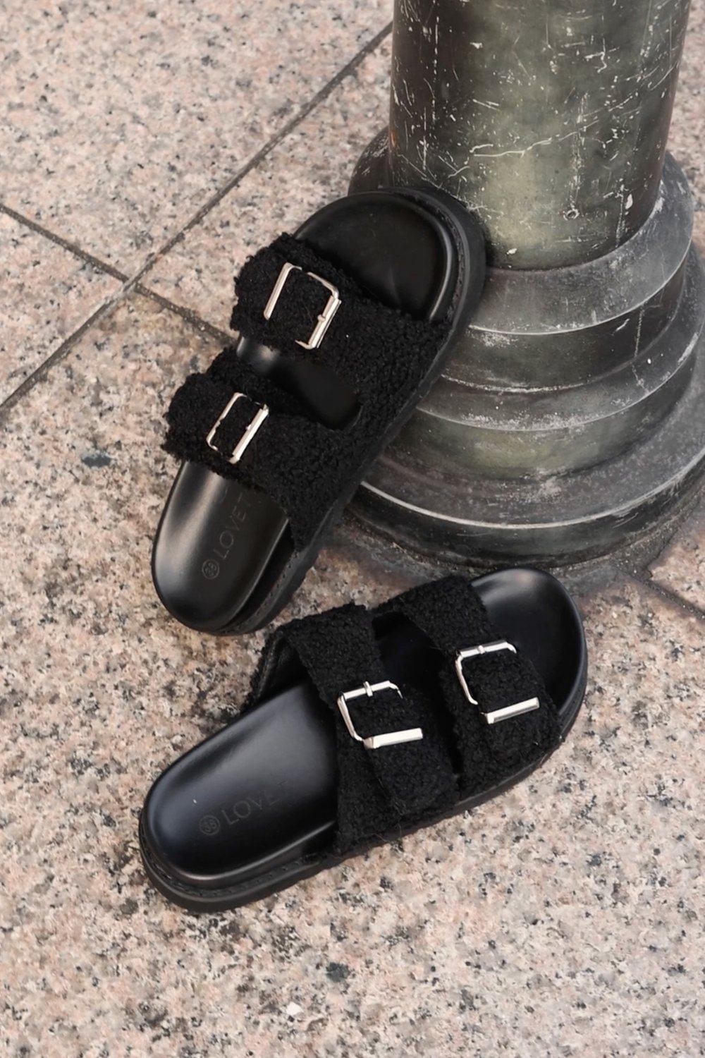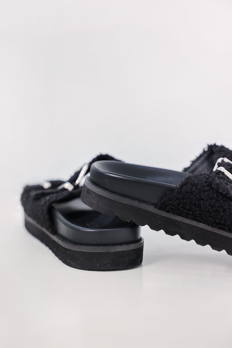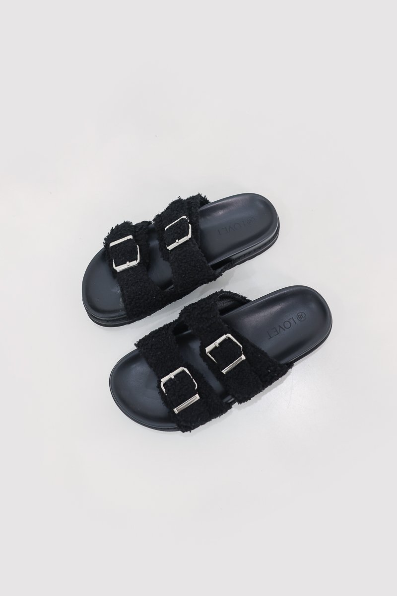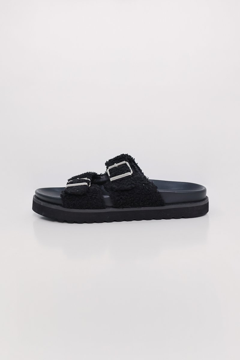 MILLY FURRY BUCKLE SANDALS (BLACK)