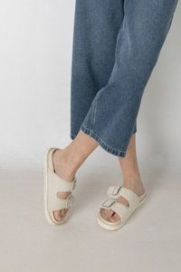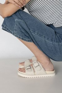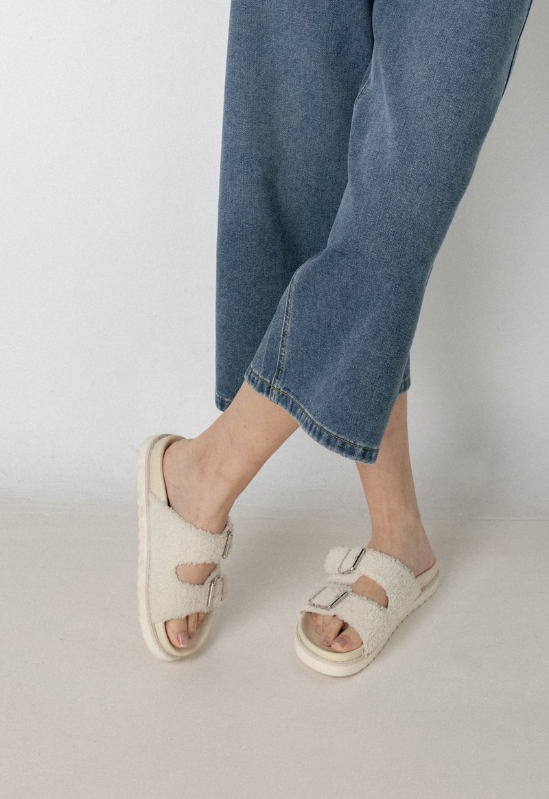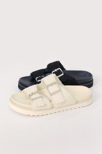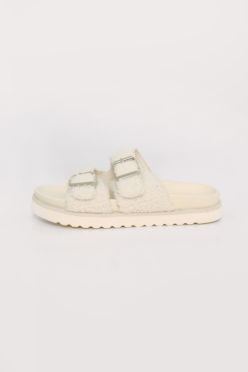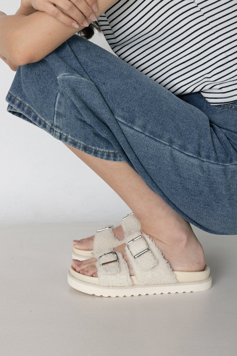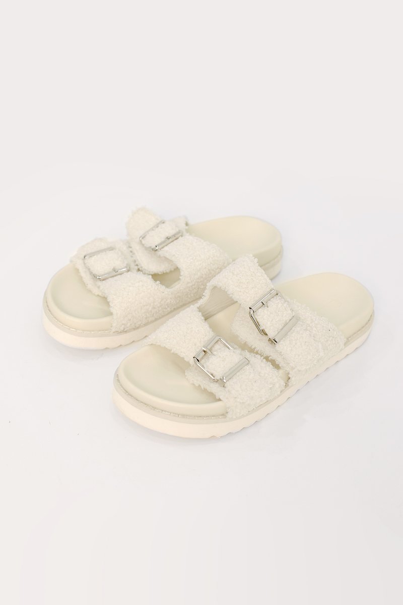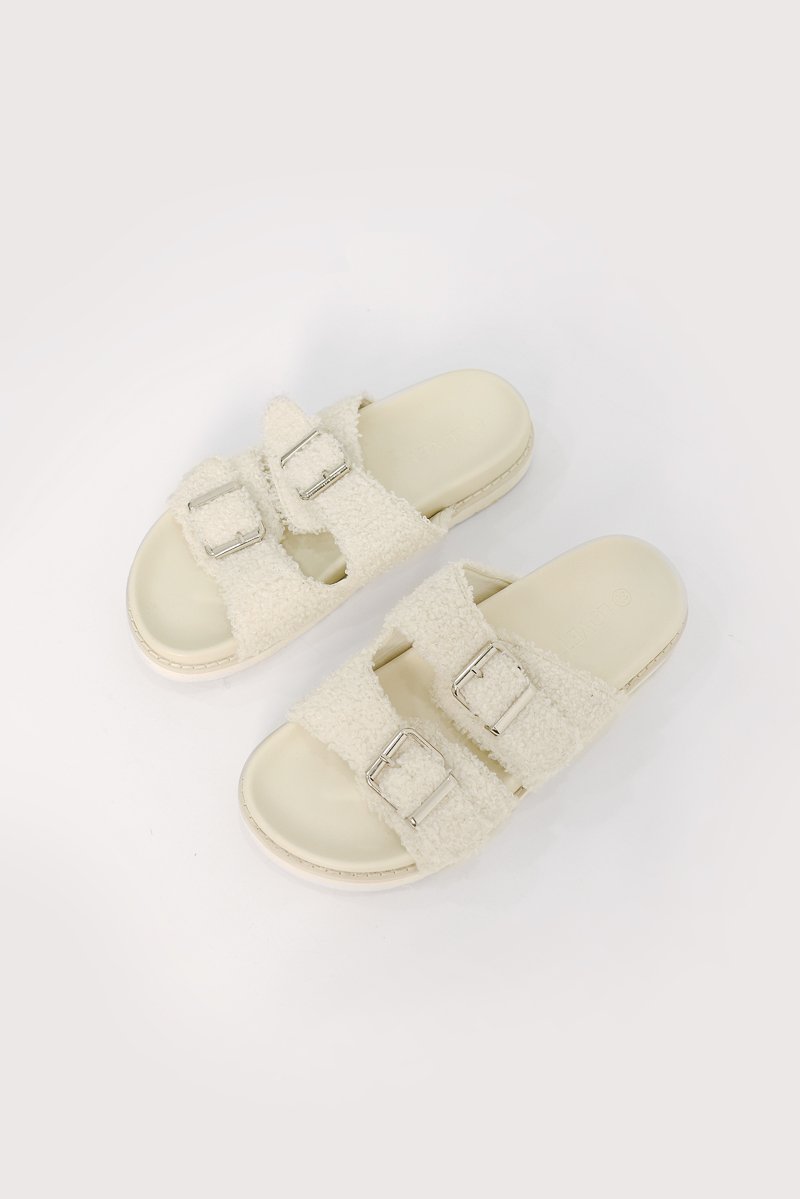 MILLY FURRY BUCKLE SANDALS (OFF-WHITE)