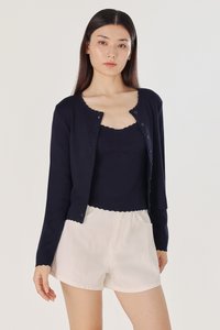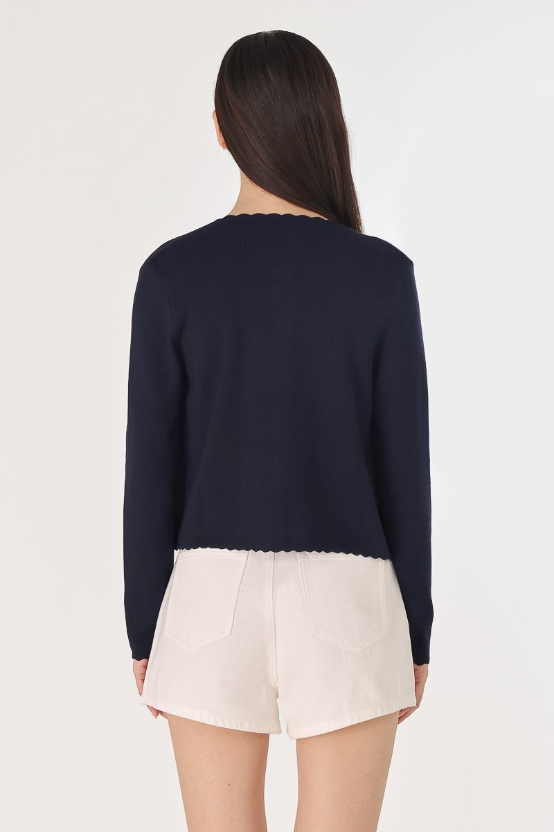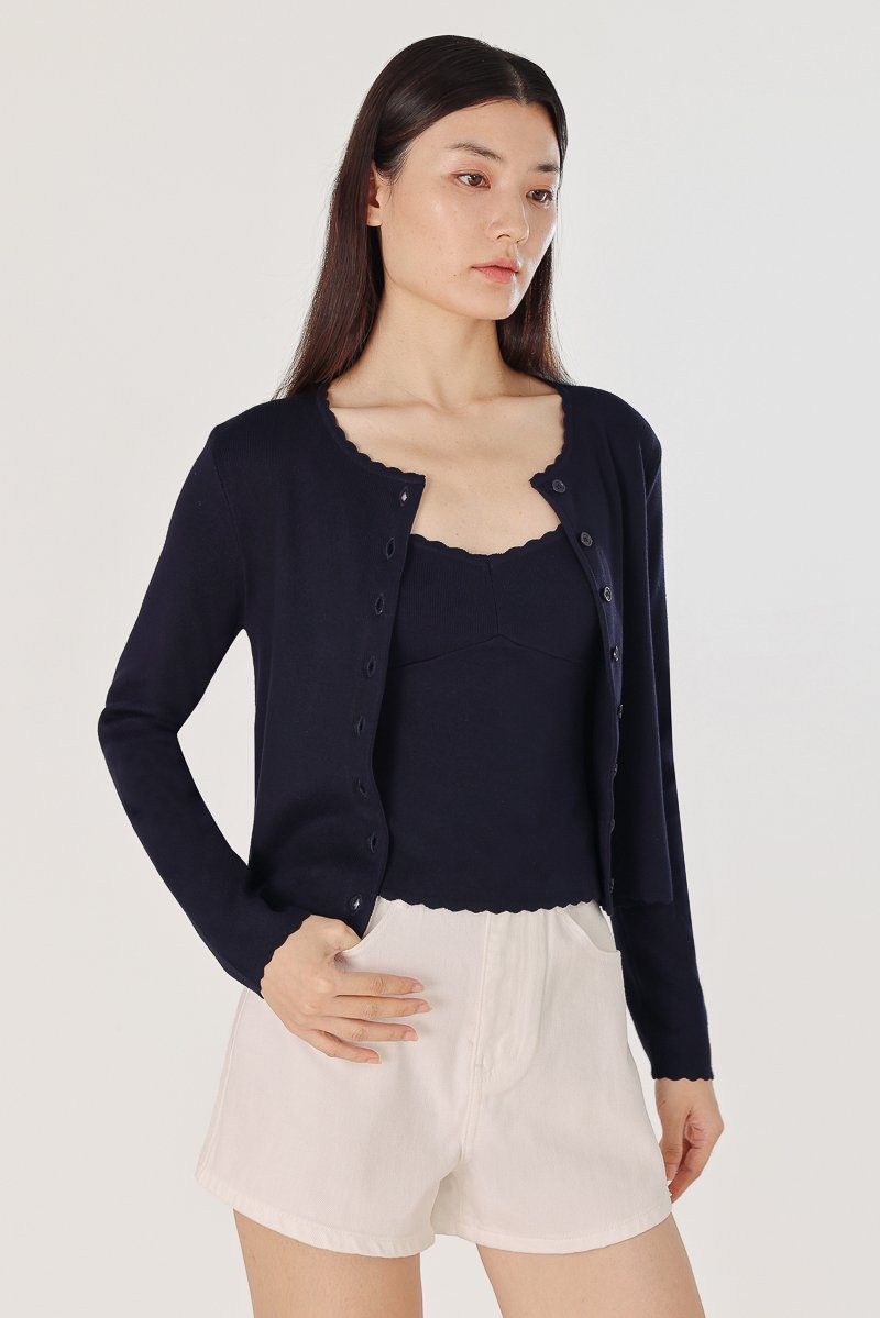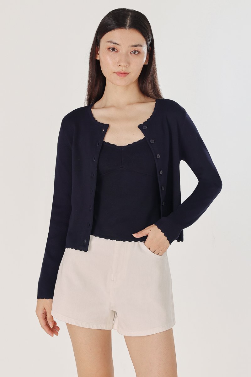 MIREA SCALLOP TRIM BUTTON KNIT CARDIGAN (NAVY)
