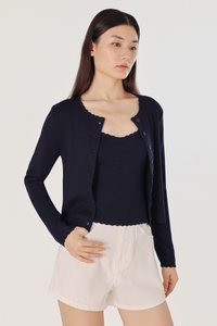 Enjoy 10% off per set if you purchase both Mirea Scallop Trim V-neck Cami Knit Top (in any size/color) & Mirea Scallop Trim Button Knit Cardigan (in any size/color) as a set here.