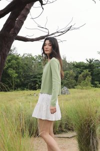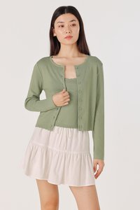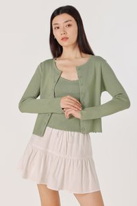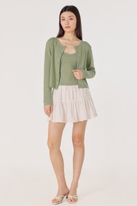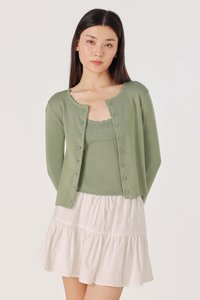 MIREA SCALLOP TRIM BUTTON KNIT CARDIGAN (PISTACHIO)