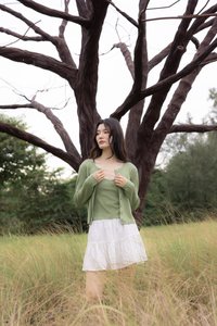 Model Du Yue UK6, 173.5cm (PTP 15.25", Waist 11.5") wears size S for tops/dresses/outerwears/one-pieces and size XS for bottoms.