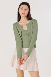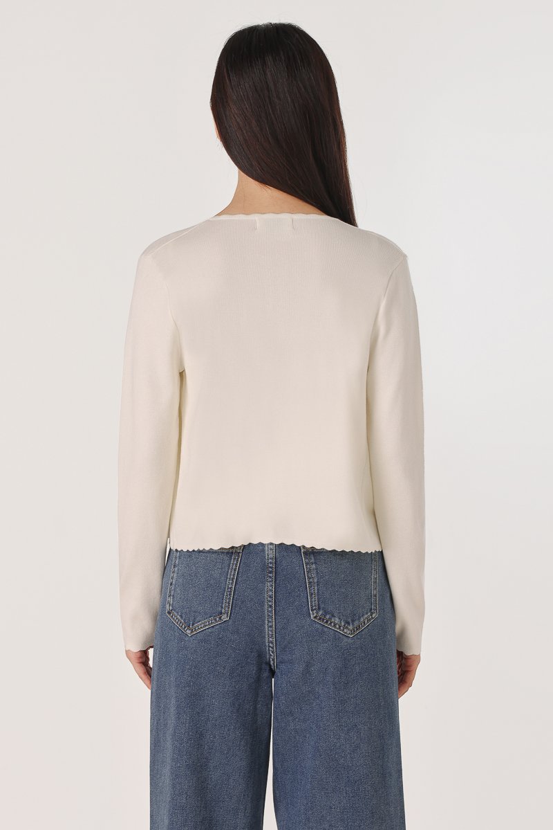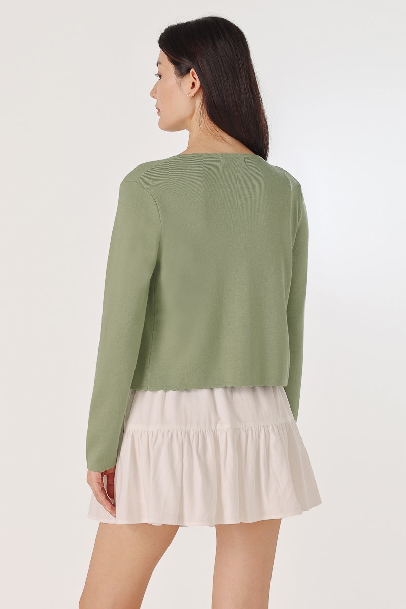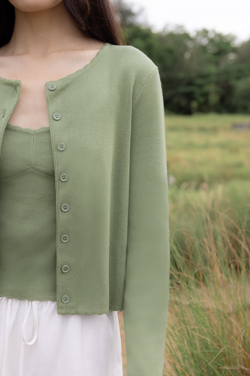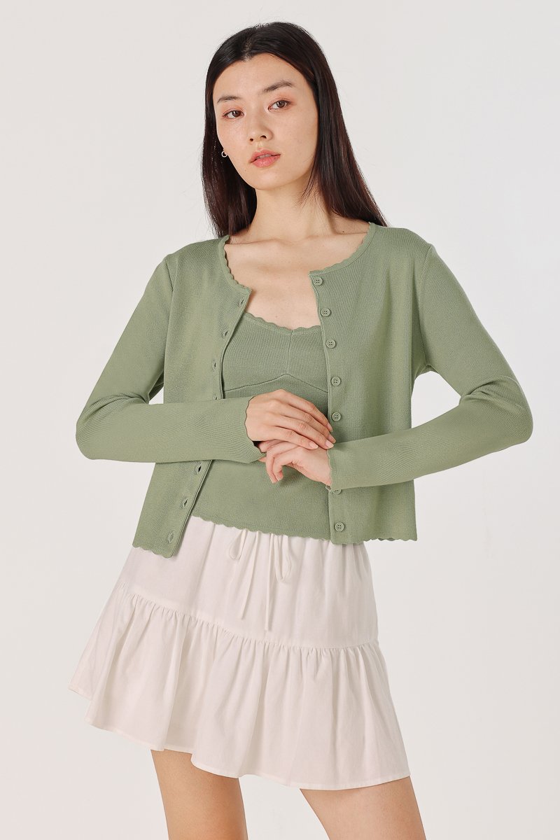 MIREA SCALLOP TRIM KNIT TOP CARDIGAN SET
