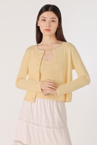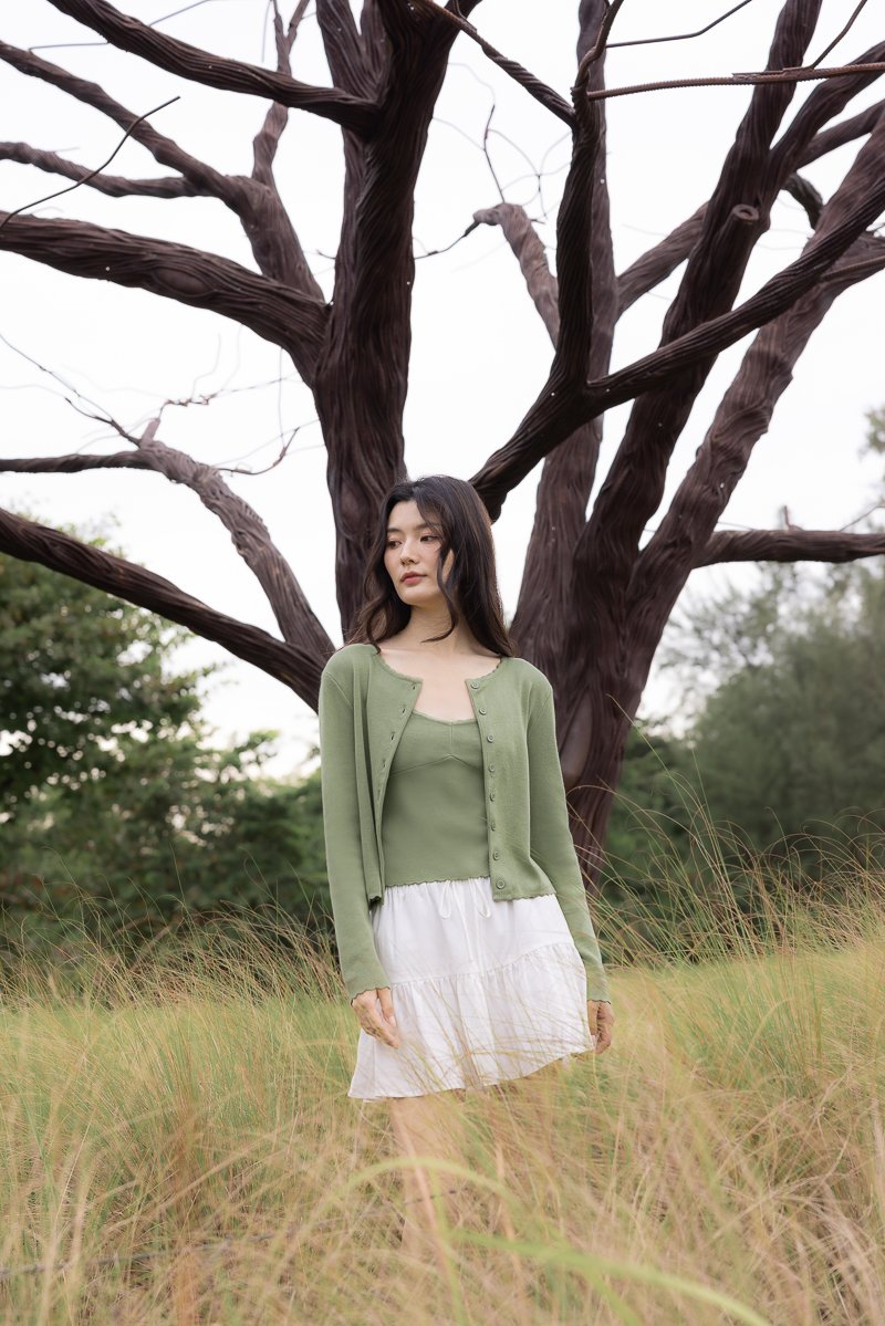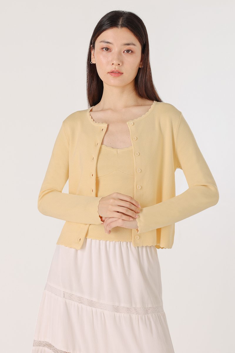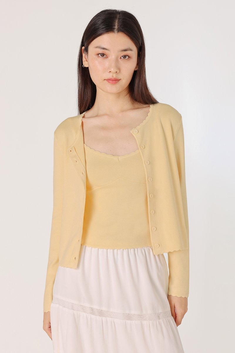 Enjoy 10% off per set if you purchase both Mirea Scallop Trim V-neck Cami Knit Top (in any size/color) & Mirea Scallop Trim Button Knit Cardigan (in any size/color) as a set.