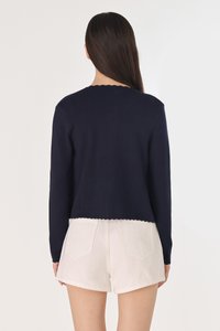 Mirea brings a sweet touch to your everyday style with a charming scallop-trim design that softens any look. This soft knit cardigan, with just the right amount of stretch, contours your silhouette for a natural feel that stays comfortable all day long. Her functional front buttons add versatility, letting you wear it open over a cami top or buttoned up for a cozy polished finish. Perfect for breezy days and layering across seasons, this piece blends comfort and feminine detail in the most timeless way. Designed to be paired with the Mirea Scallop Trim V-Neck Cami Knit Top.