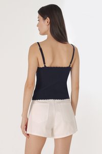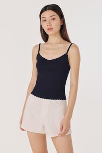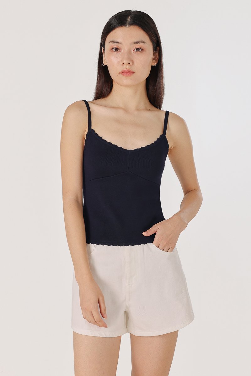MIREA SCALLOP TRIM V-NECK CAMI KNIT TOP (NAVY)