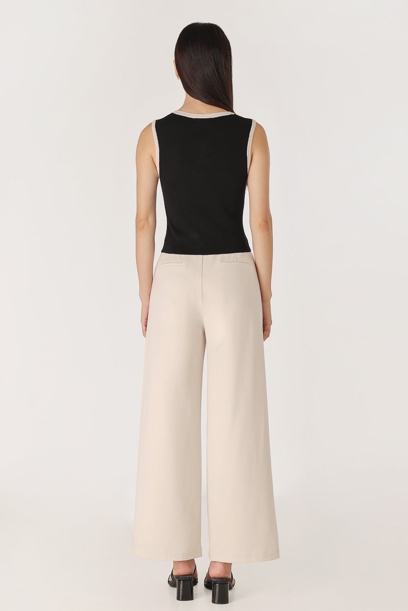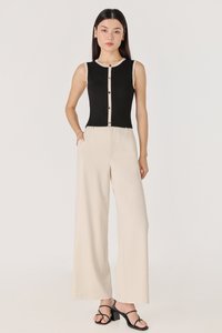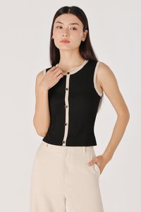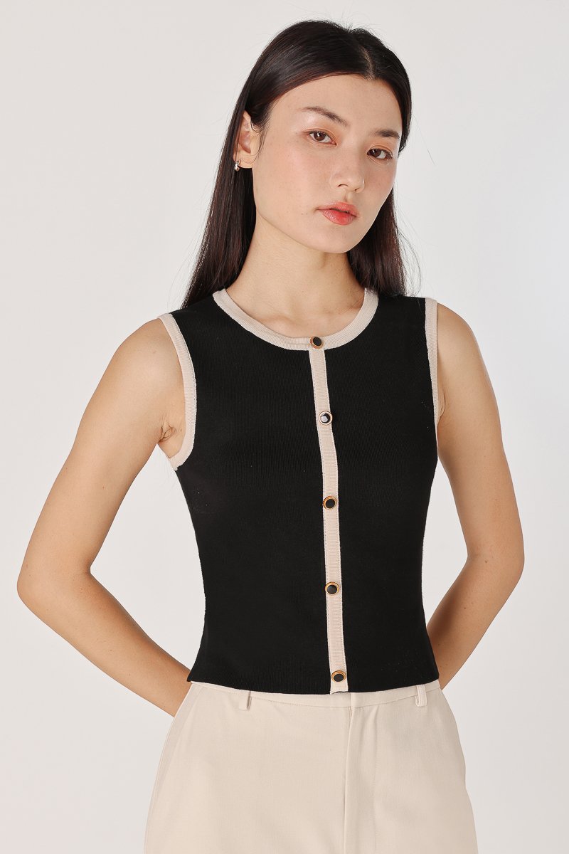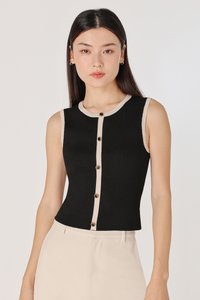 MISHA CONTRAST TRIM BUTTON KNIT TOP (BLACK)