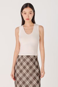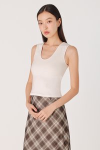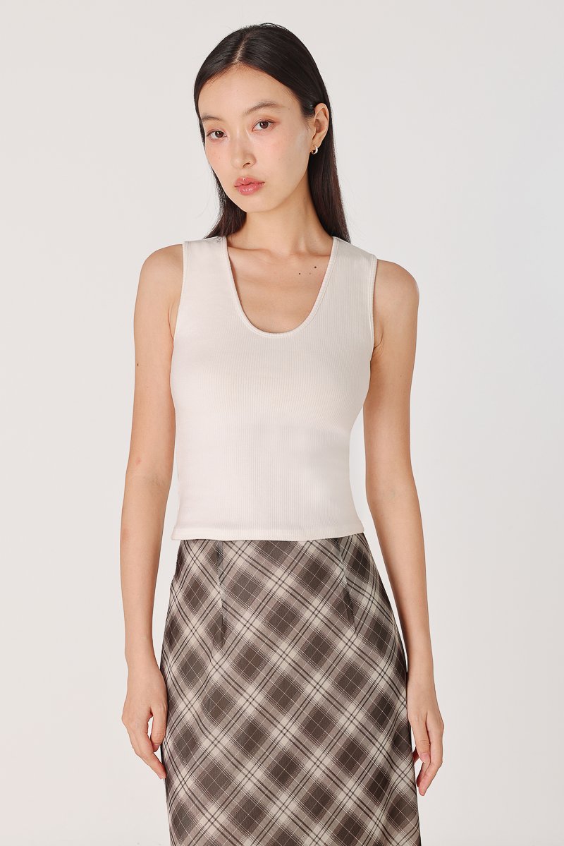 NARELLE PADDED SCOOP NECK RIBBED TANK TOP (WHITE)
