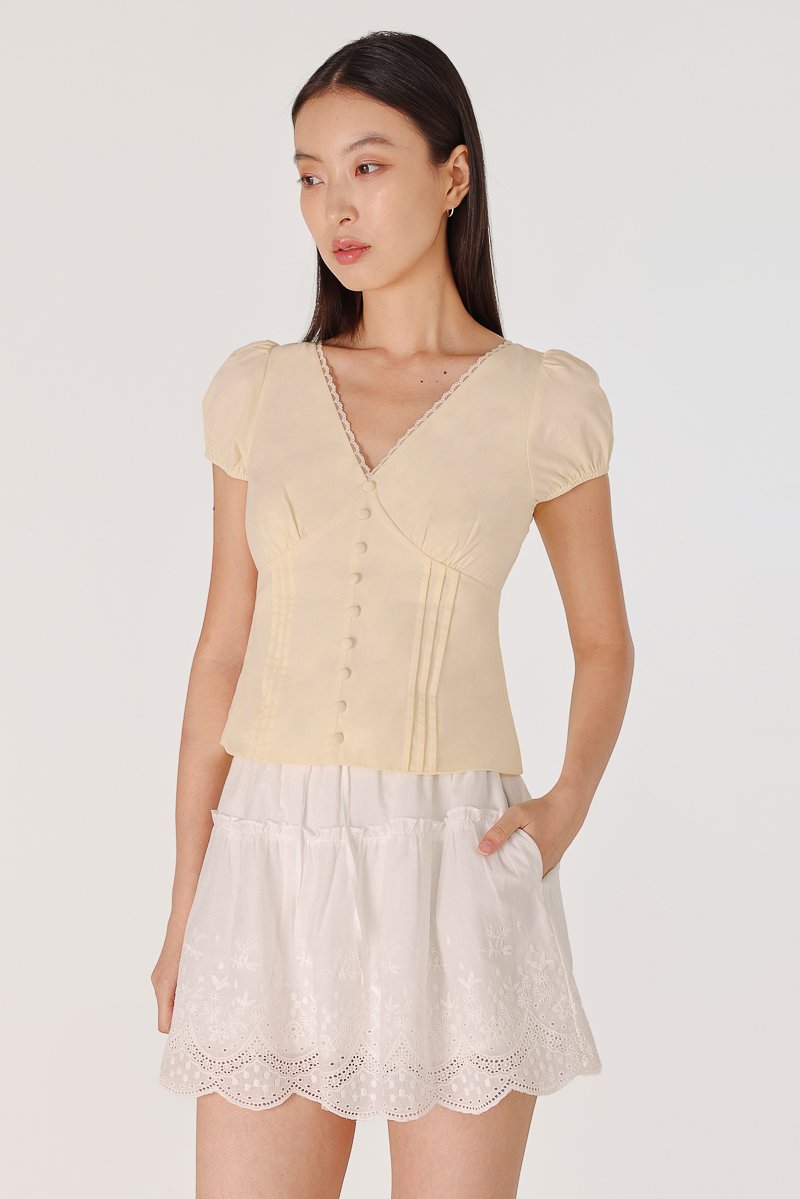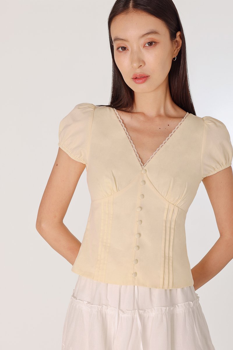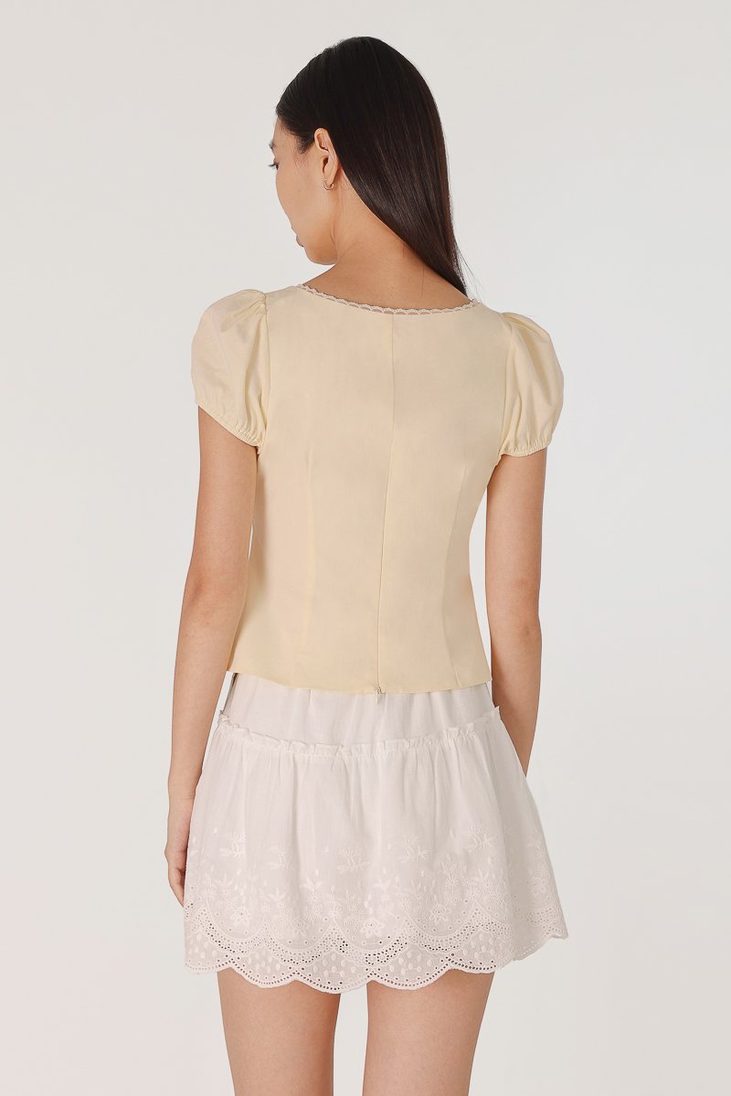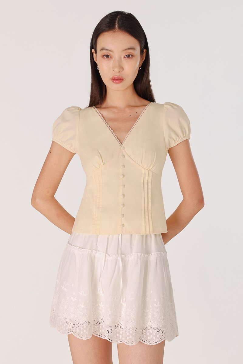 NESSA PINTUCK LACE TRIM BUTTON PUFF SLEEVE TOP (YELLOW)