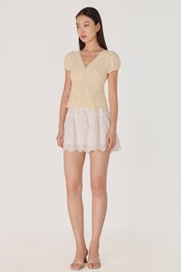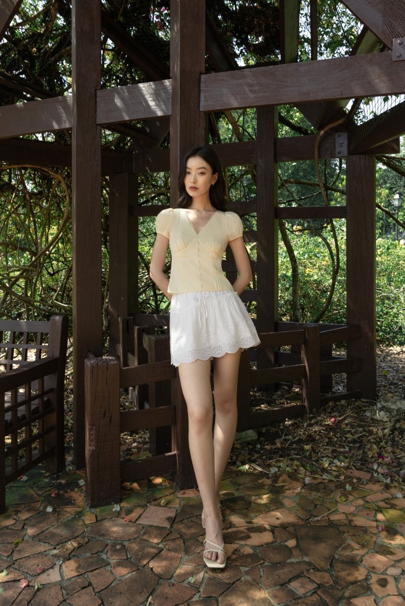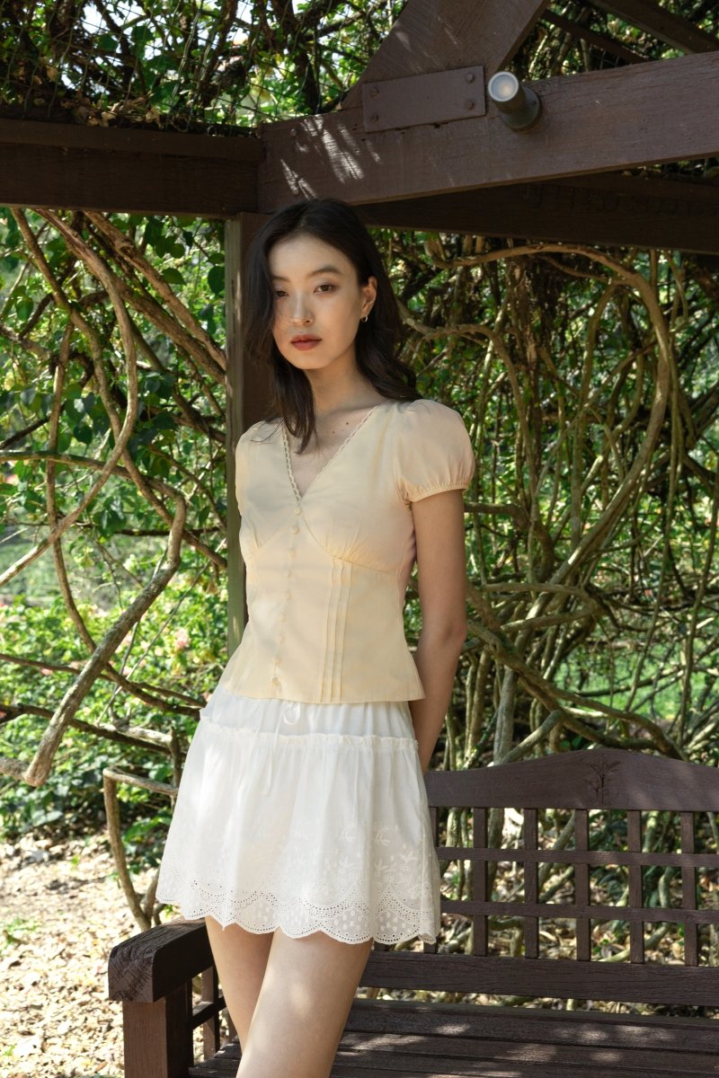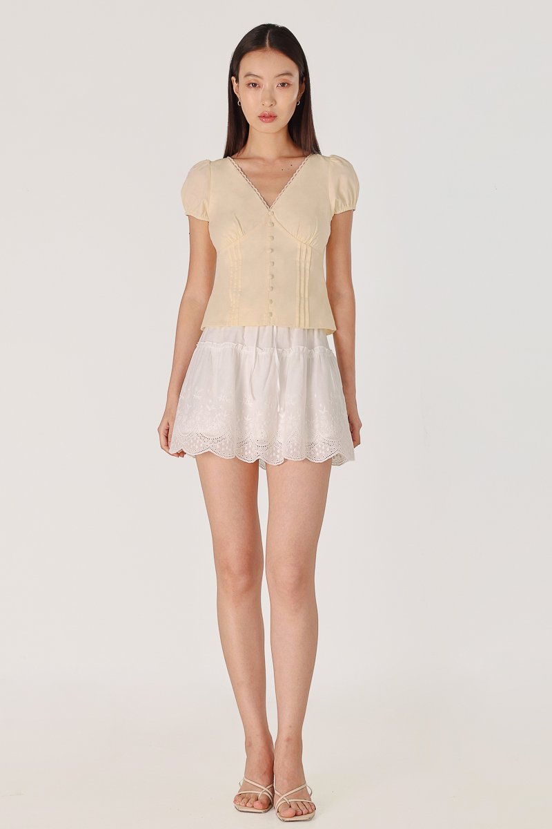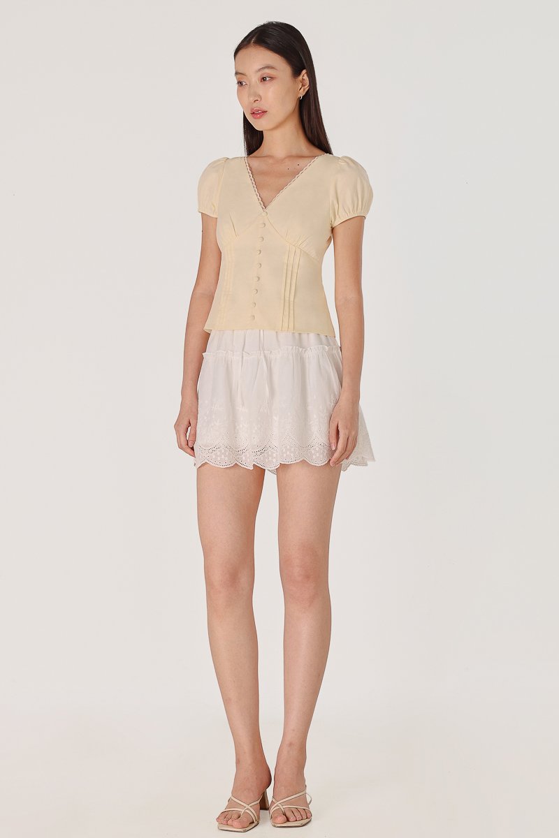 NESSA PINTUCK LACE TRIM BUTTON PUFF SLEEVE TOP (YELLOW)