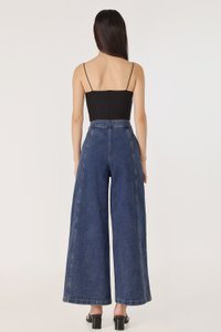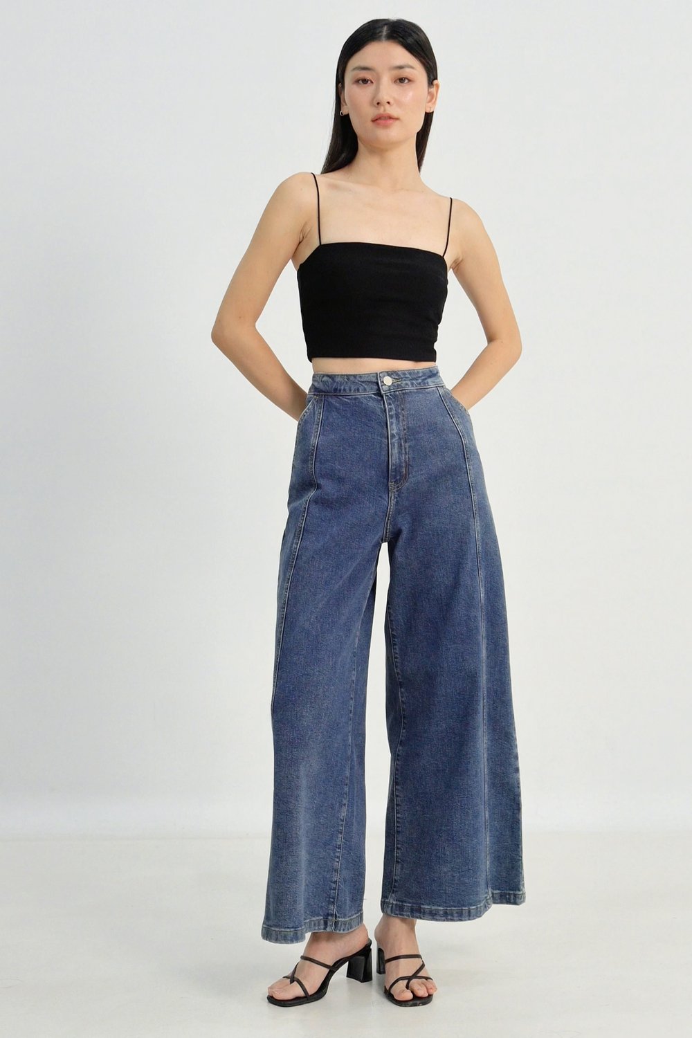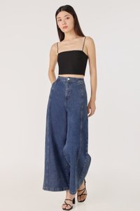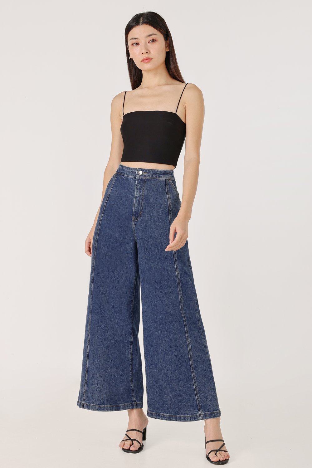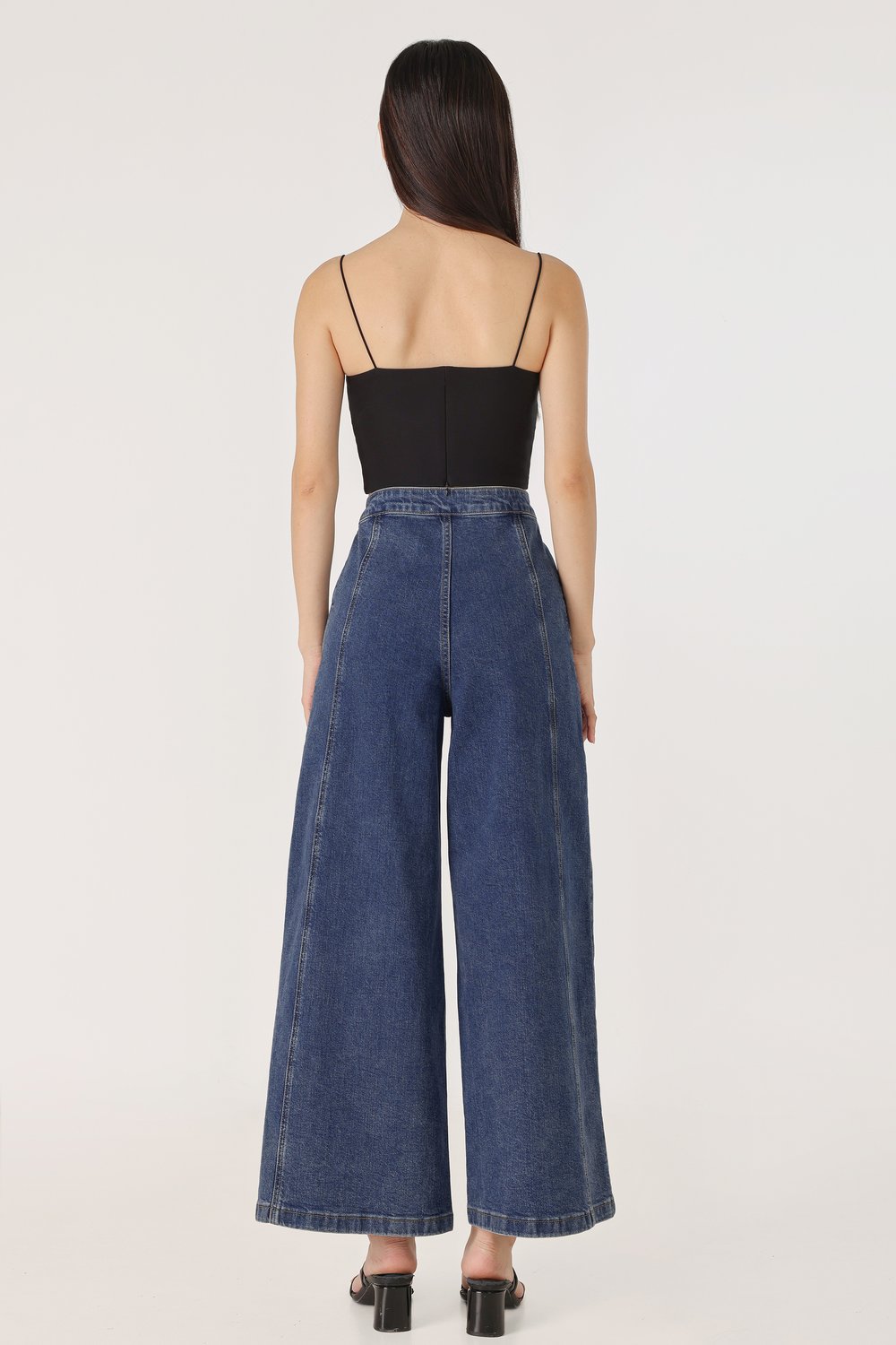 NEVERLAND PINTUCK WIDE LEG DENIM JEANS - PETITE (DARK WASHED) *BFF*