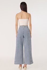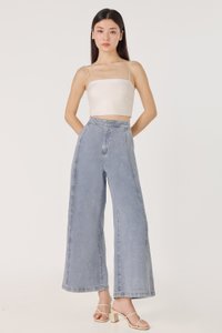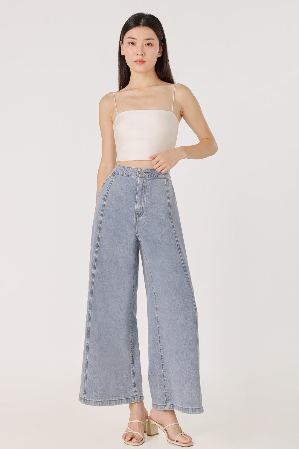 NEVERLAND PINTUCK WIDE LEG DENIM JEANS - PETITE (LIGHT WASHED) *BFF*
