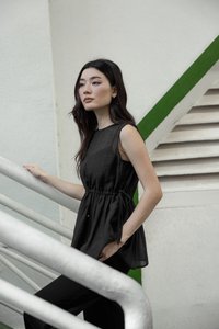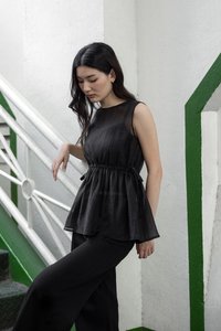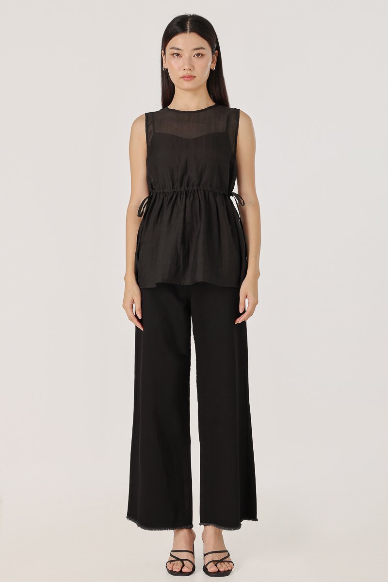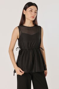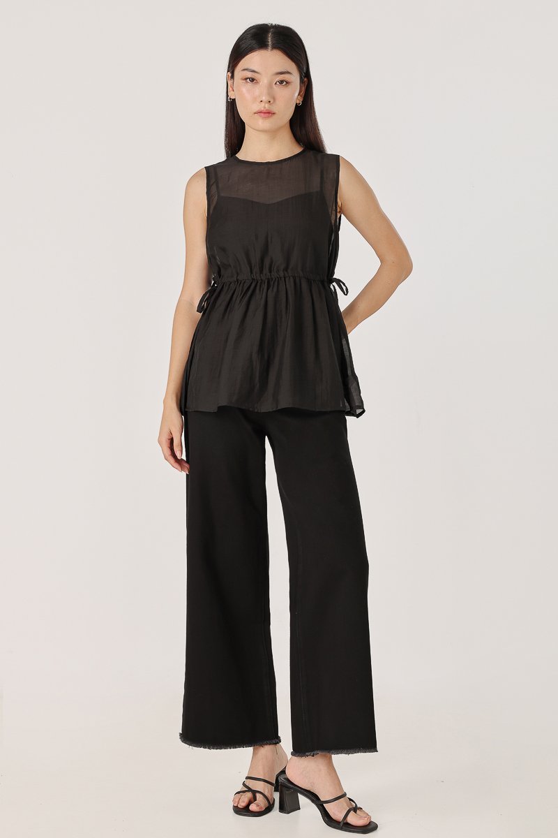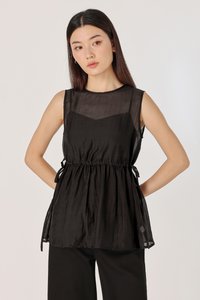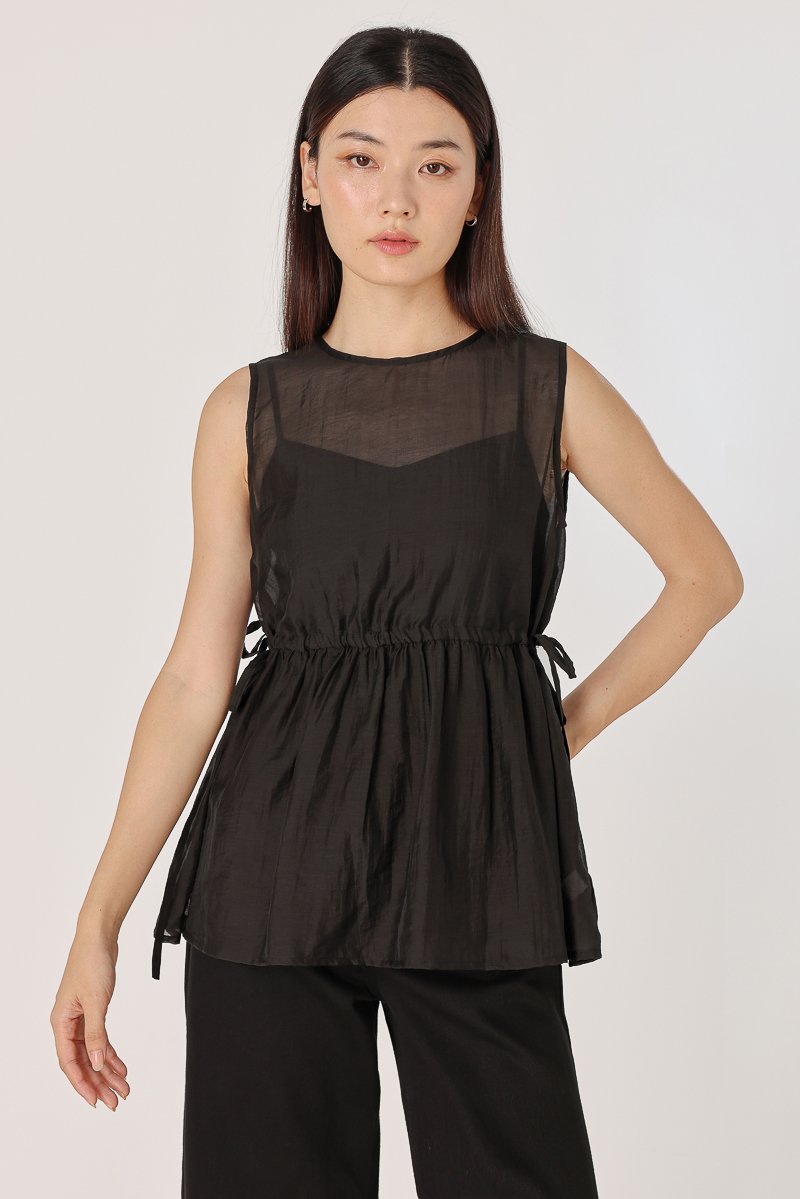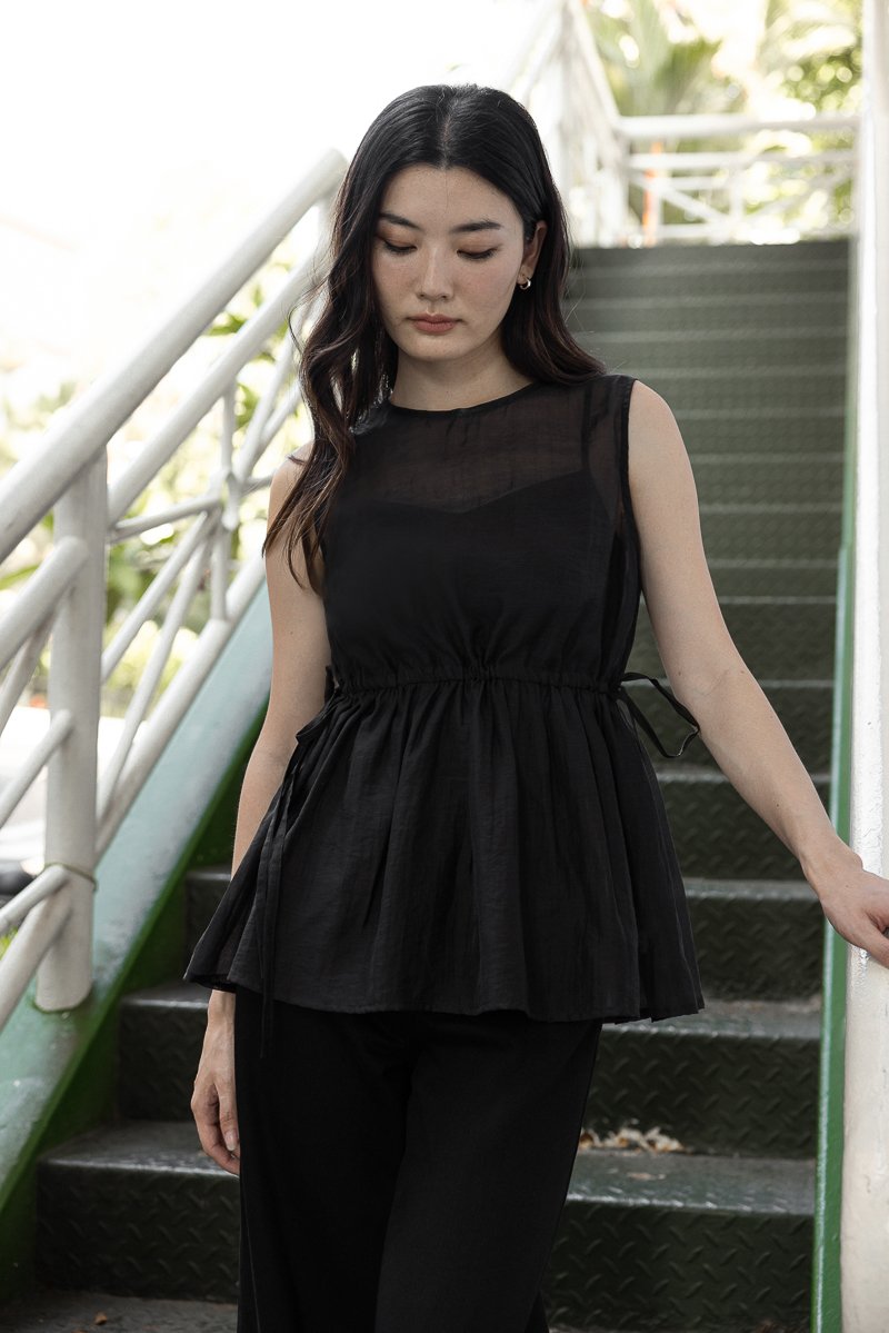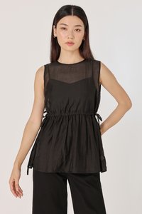 NORI SHEER DRAWSTRING TOP (BLACK)