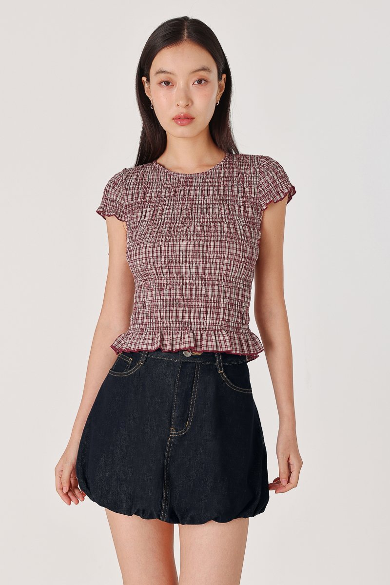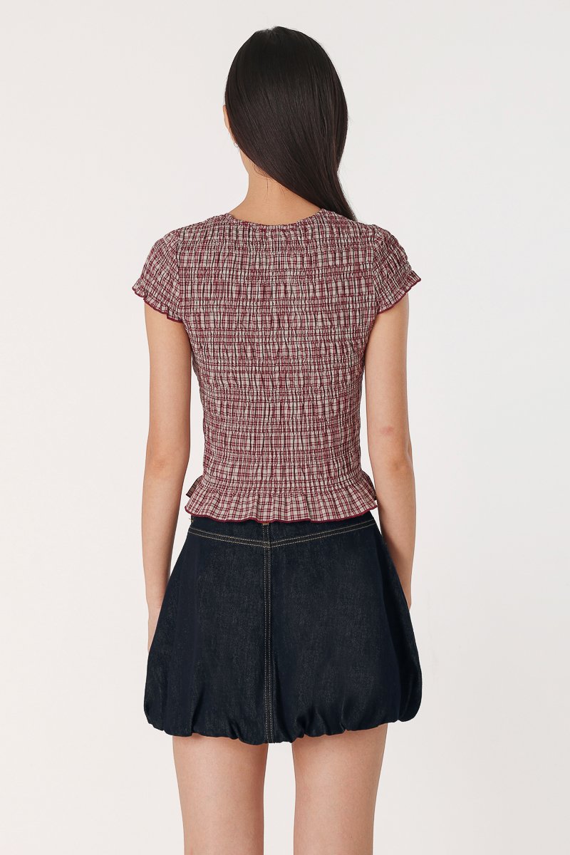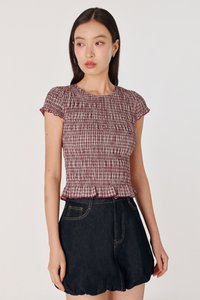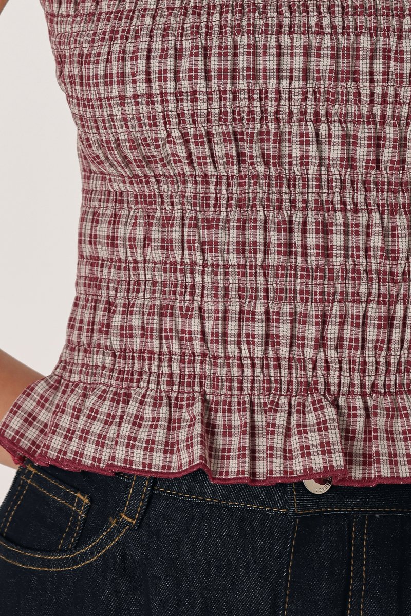NOVALIE CHECKERED SMOCKED CAP SLEEVE TOP (RED)