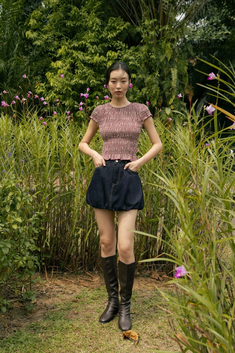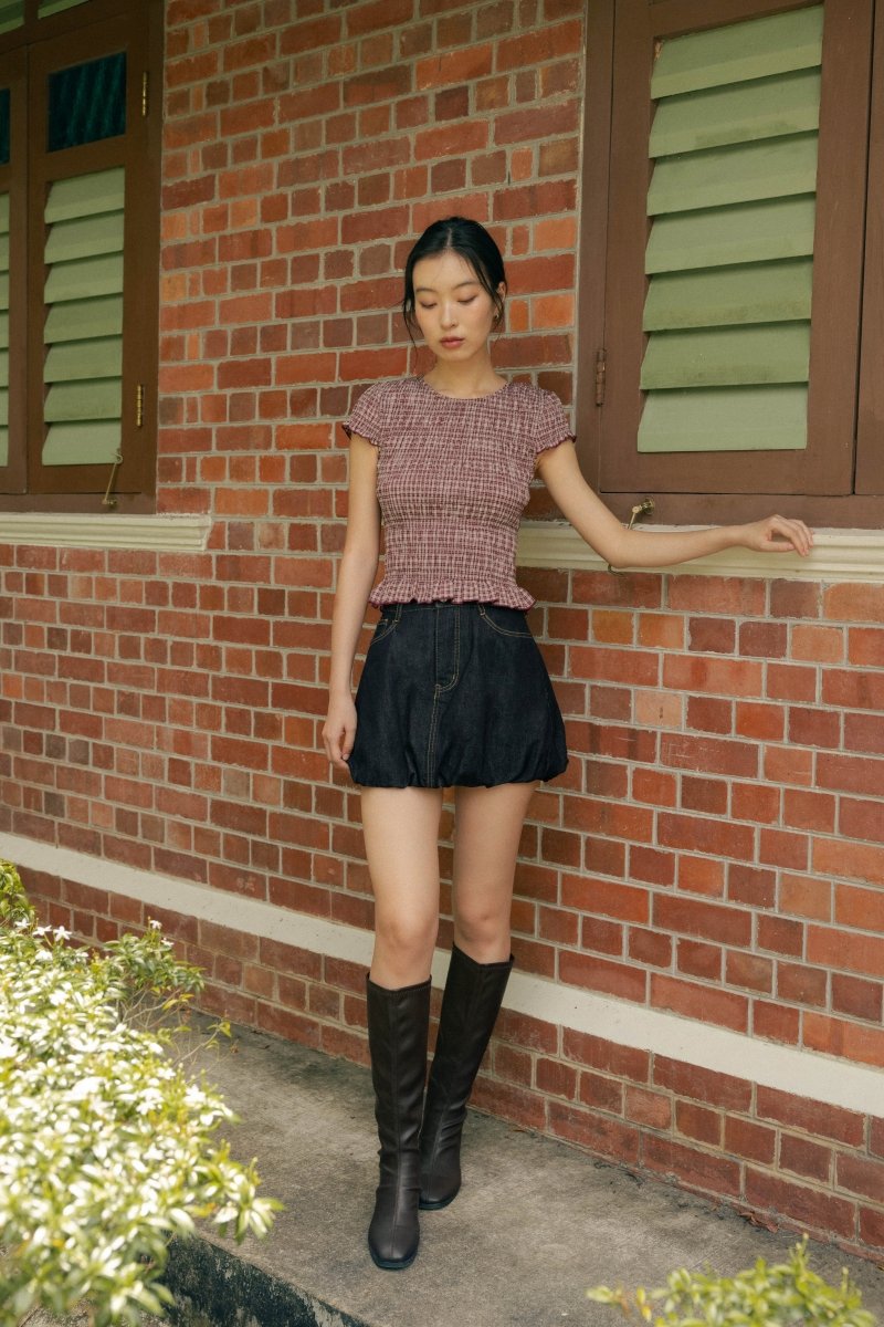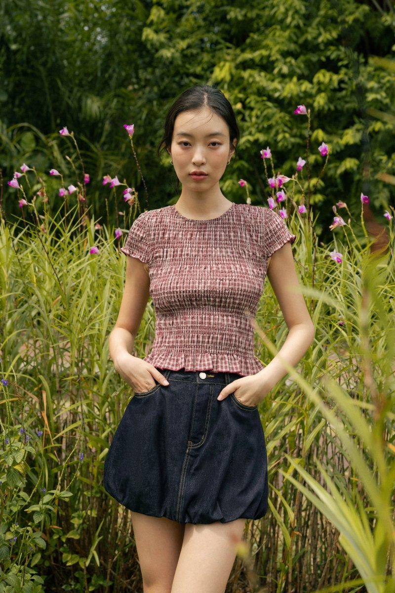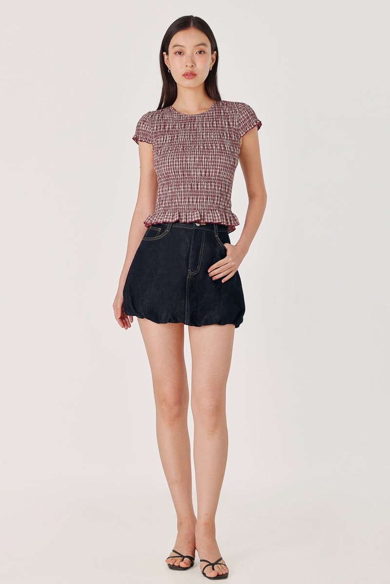 NOVALIE CHECKERED SMOCKED CAP SLEEVE TOP (RED)