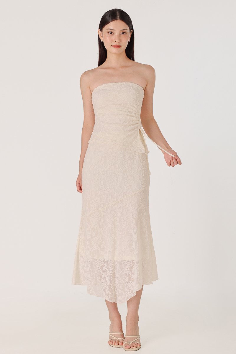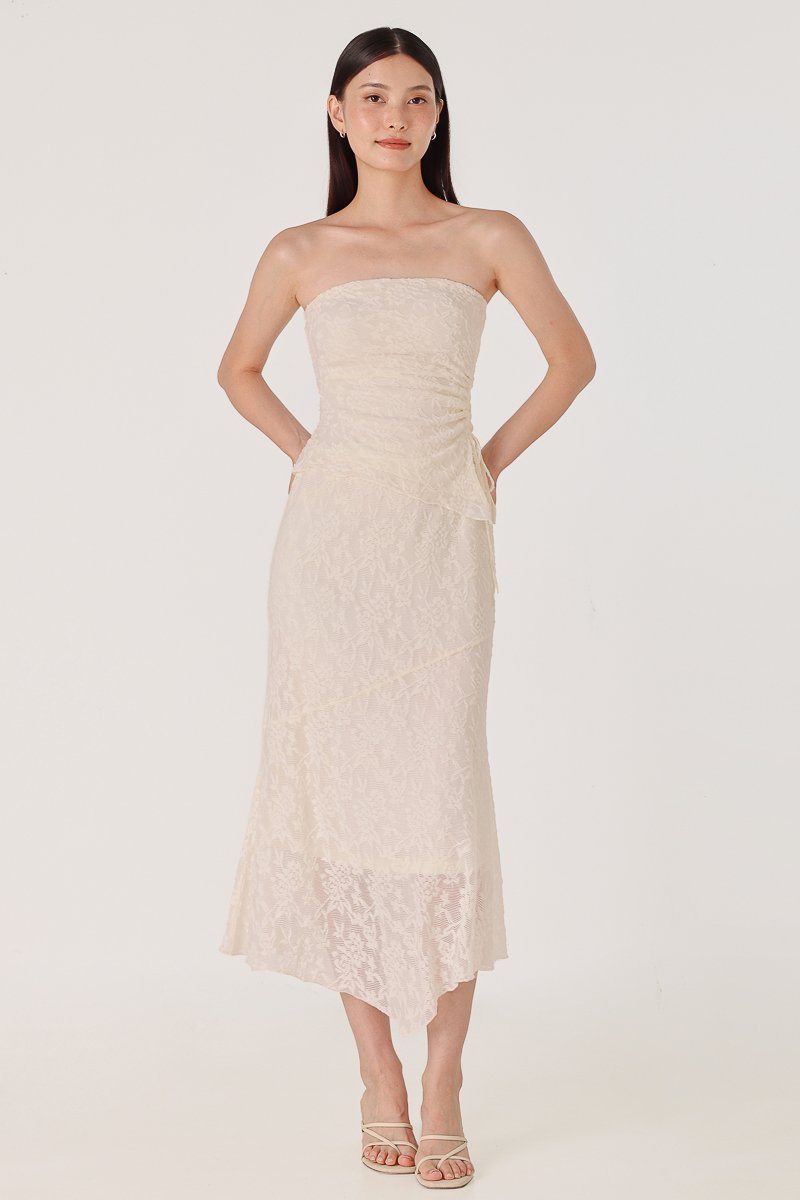 Enjoy 10% off per set if you purchase both Novella Padded Lace Jacquard Asymmetrical Drawstring Tube Top (in any size) & Novella Lace Jacquard Asymmetrical Handkerchief Midaxi Skirt (in any size).