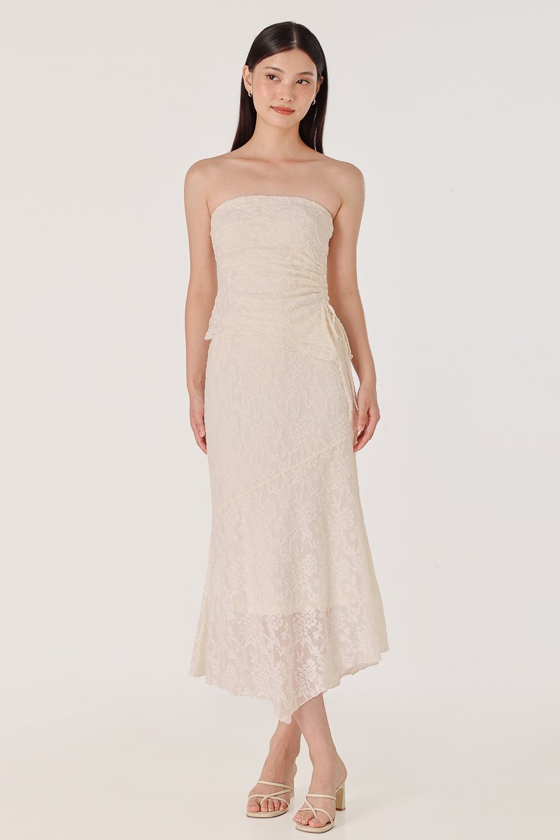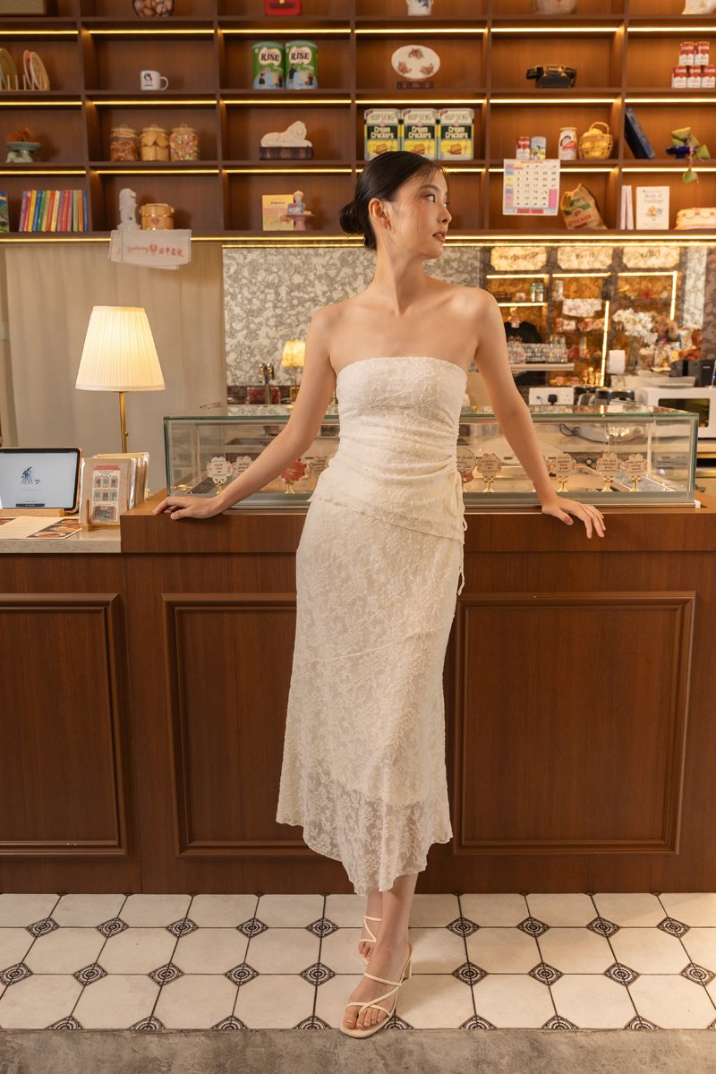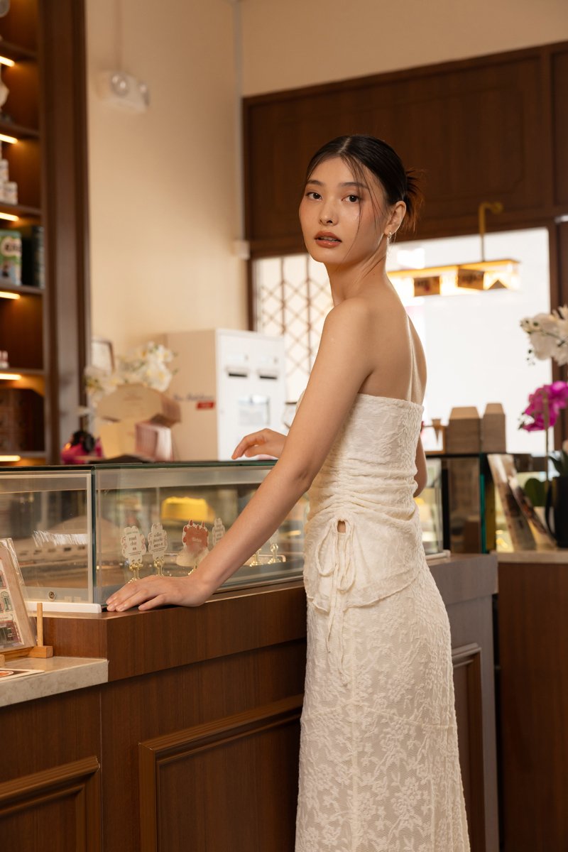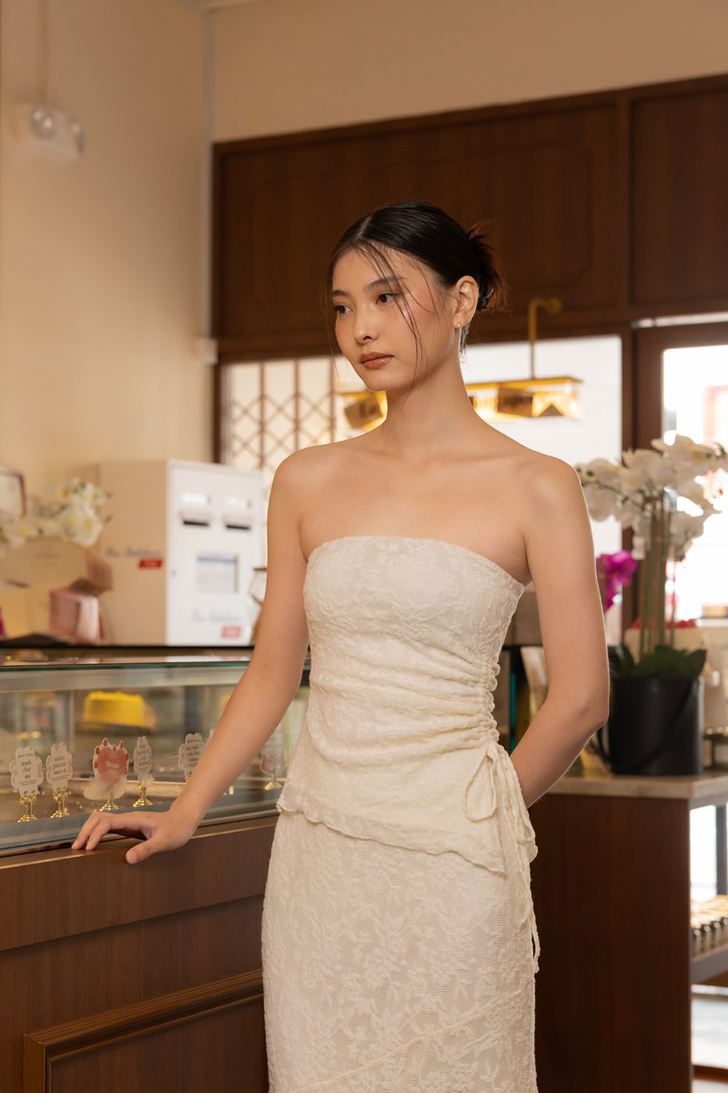 Enjoy 10% off per set if you purchase both Novella Padded Lace Jacquard Asymmetrical Drawstring Tube Top (in any size) & Novella Lace Jacquard Asymmetrical Handkerchief Midaxi Skirt (in any size) here.