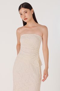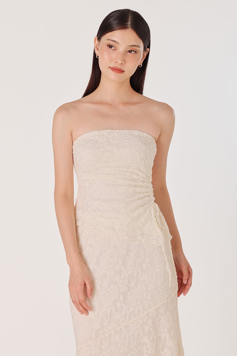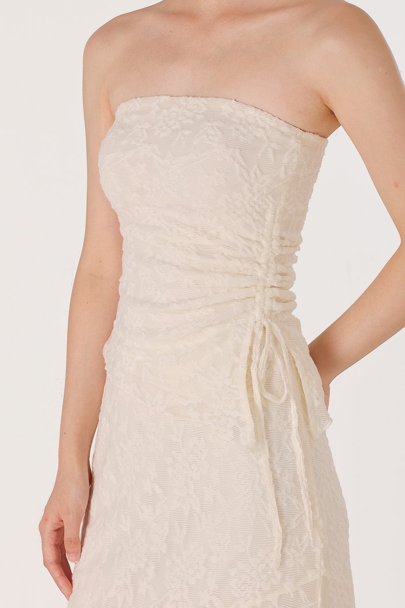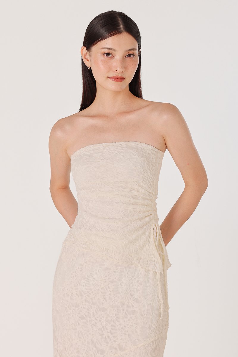 NOVELLA PADDED LACE JACQUARD ASYMMETRICAL DRAWSTRING TUBE TOP