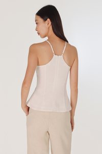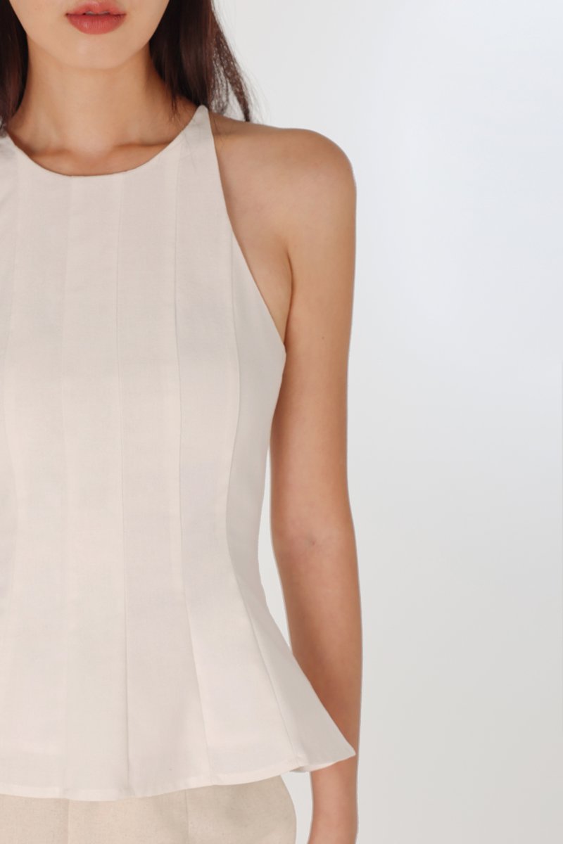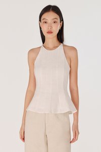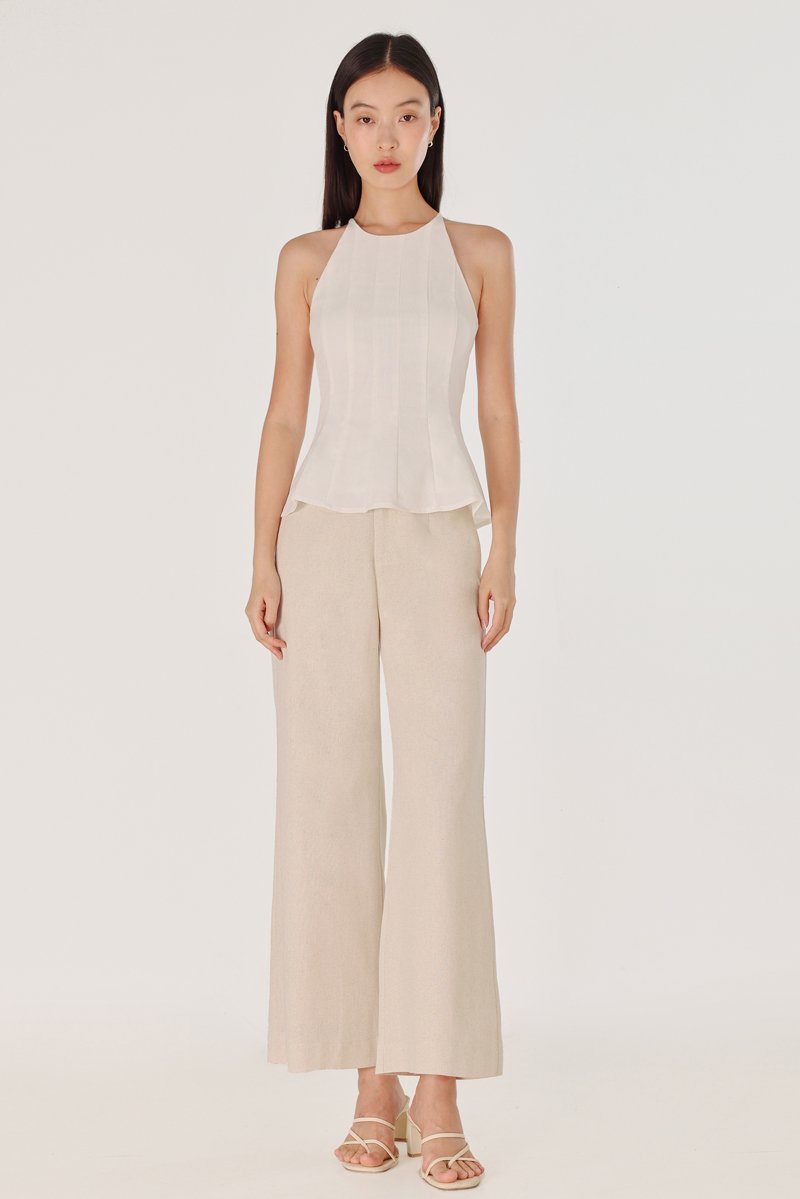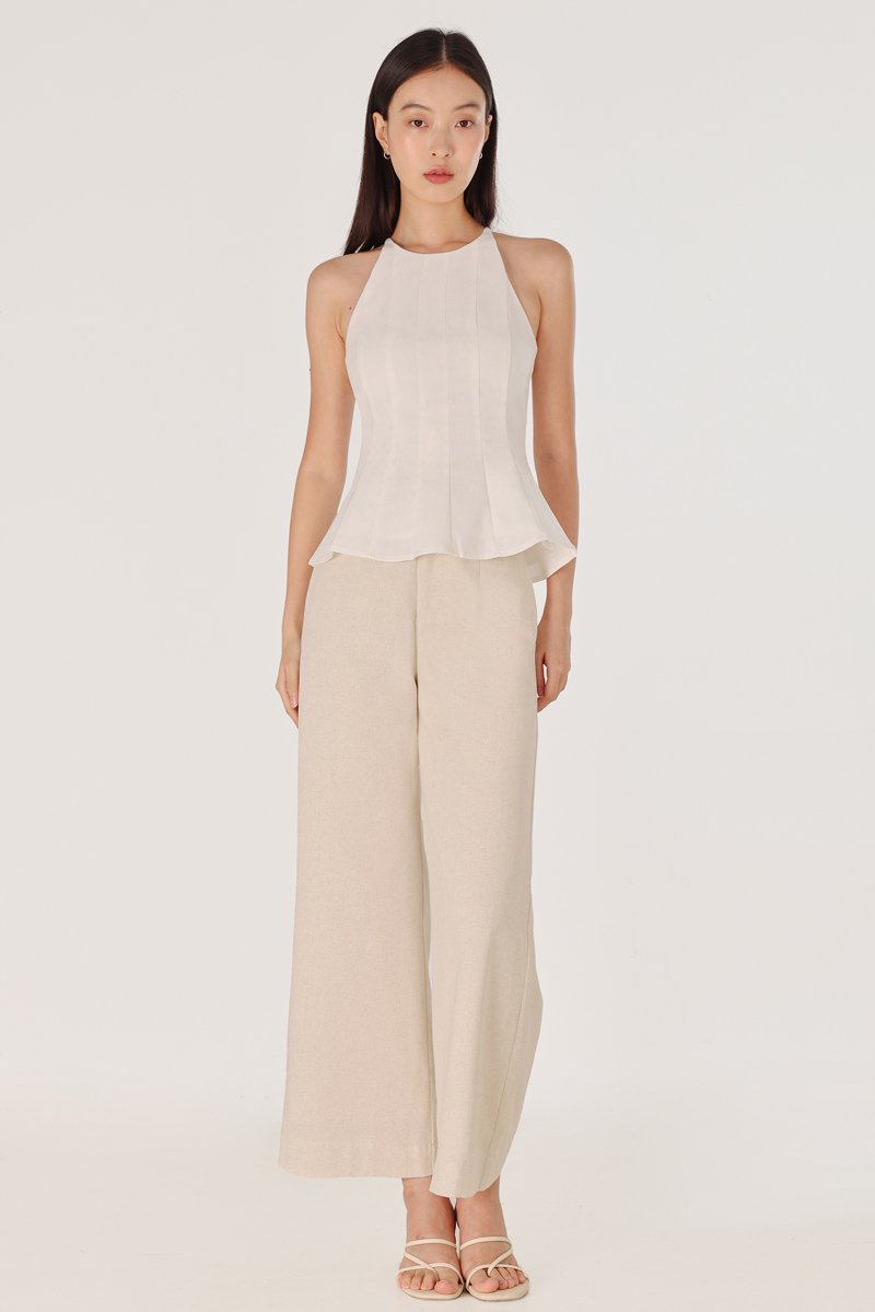 ODELLE PADDED LINEN PANELLED HALTER FLARE TOP (WHITE)