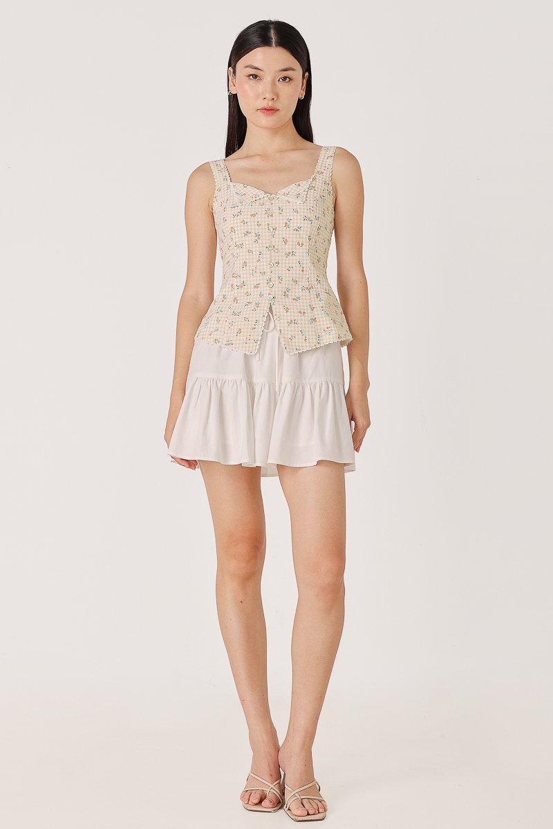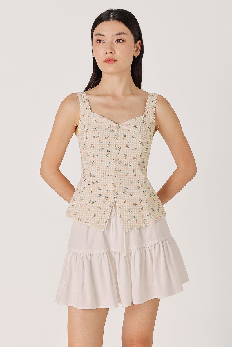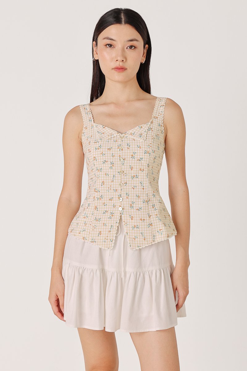 ORIANNA PADDED FOLDOVER LACE TRIM SHELL BUTTON TOP (FLORAL)