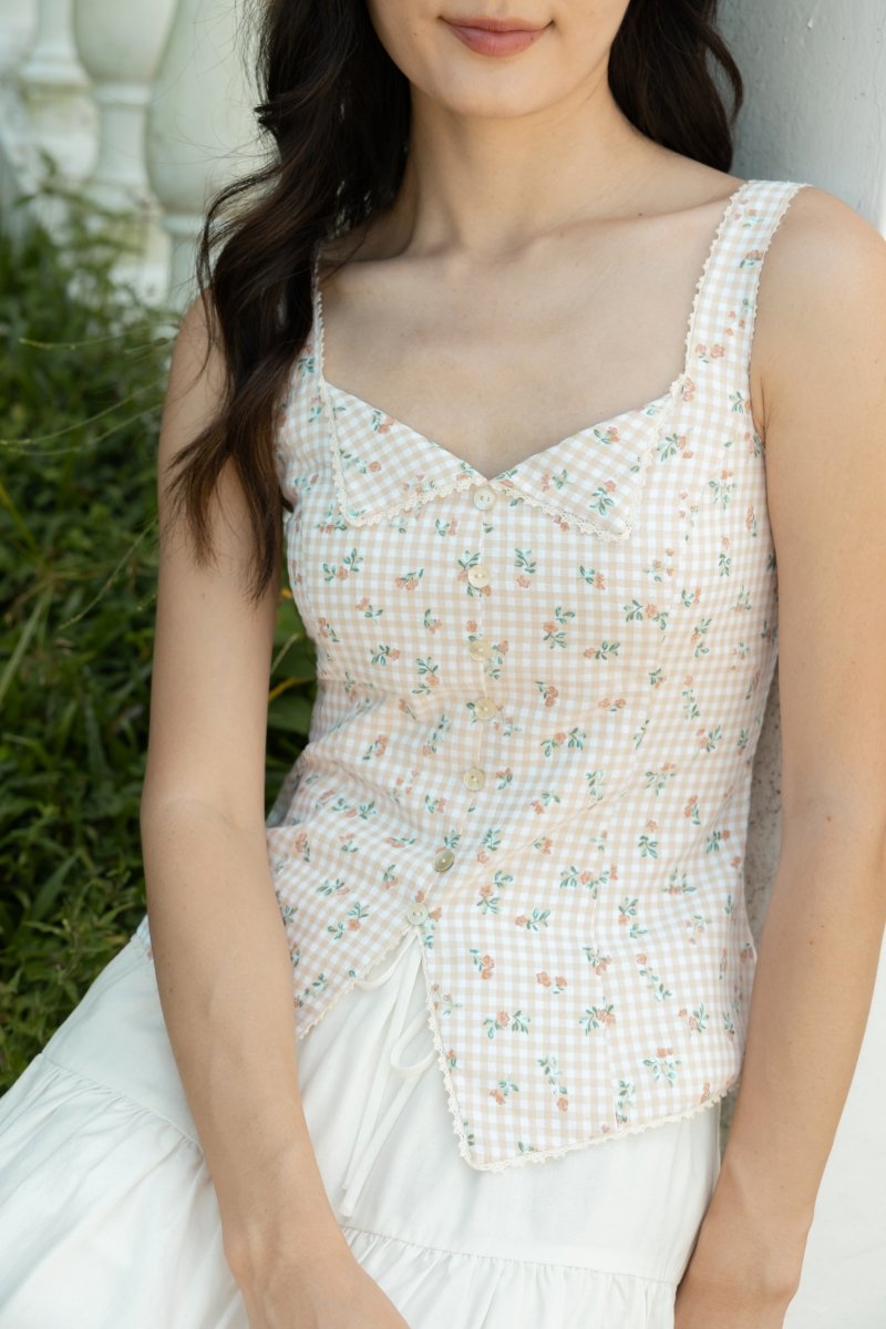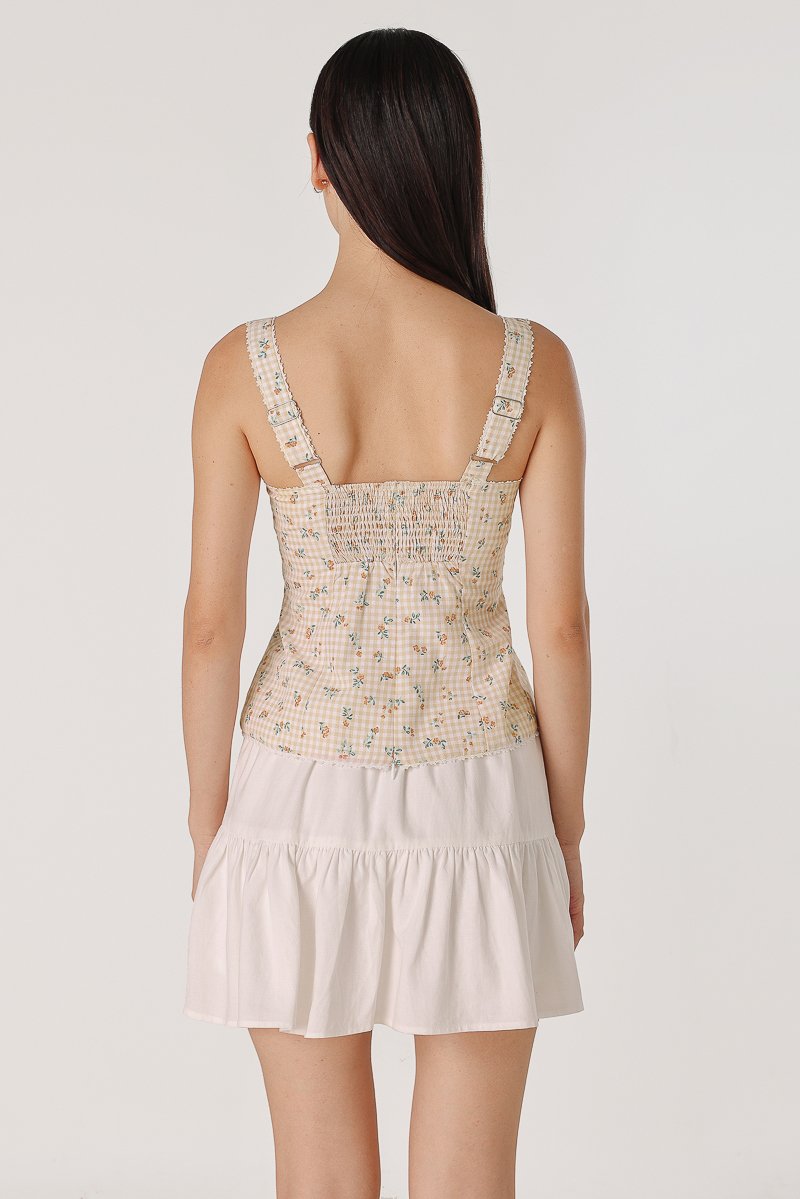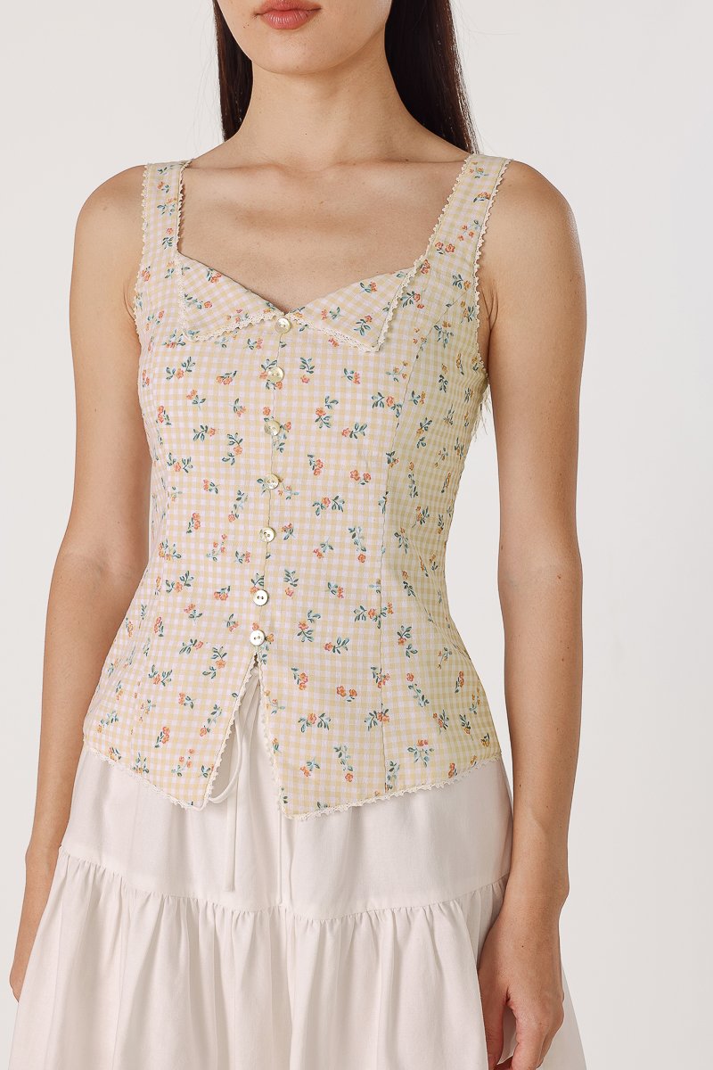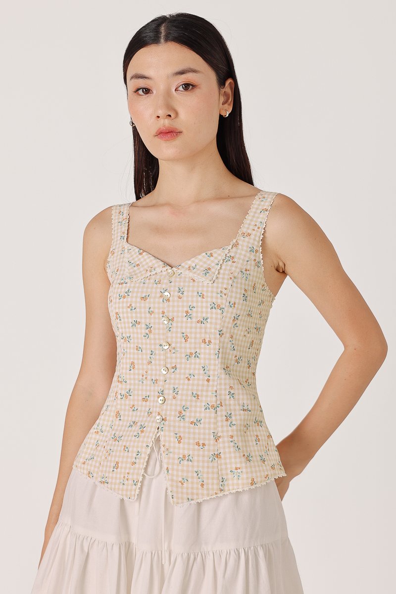 ORIANNA PADDED FOLDOVER LACE TRIM SHELL BUTTON TOP (FLORAL)