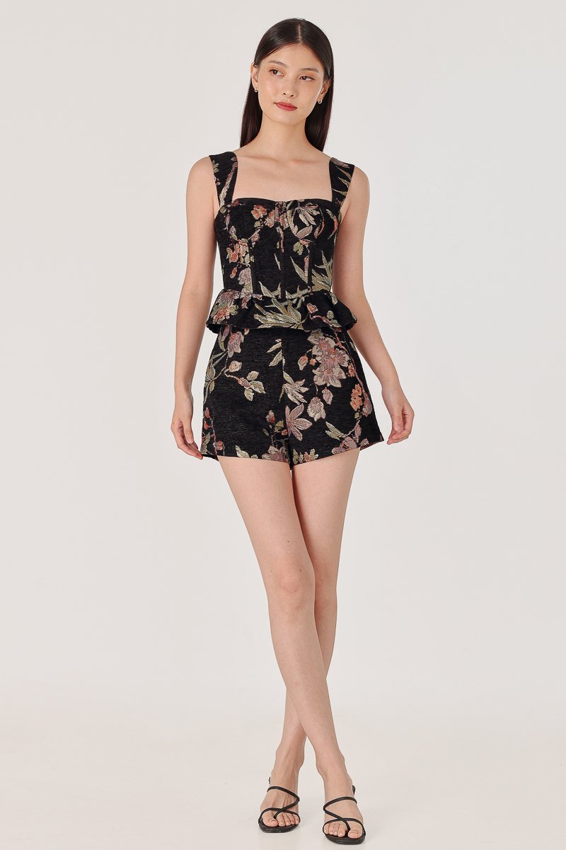 PATRINE BROCADE FLORAL SHORTS SET