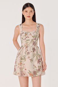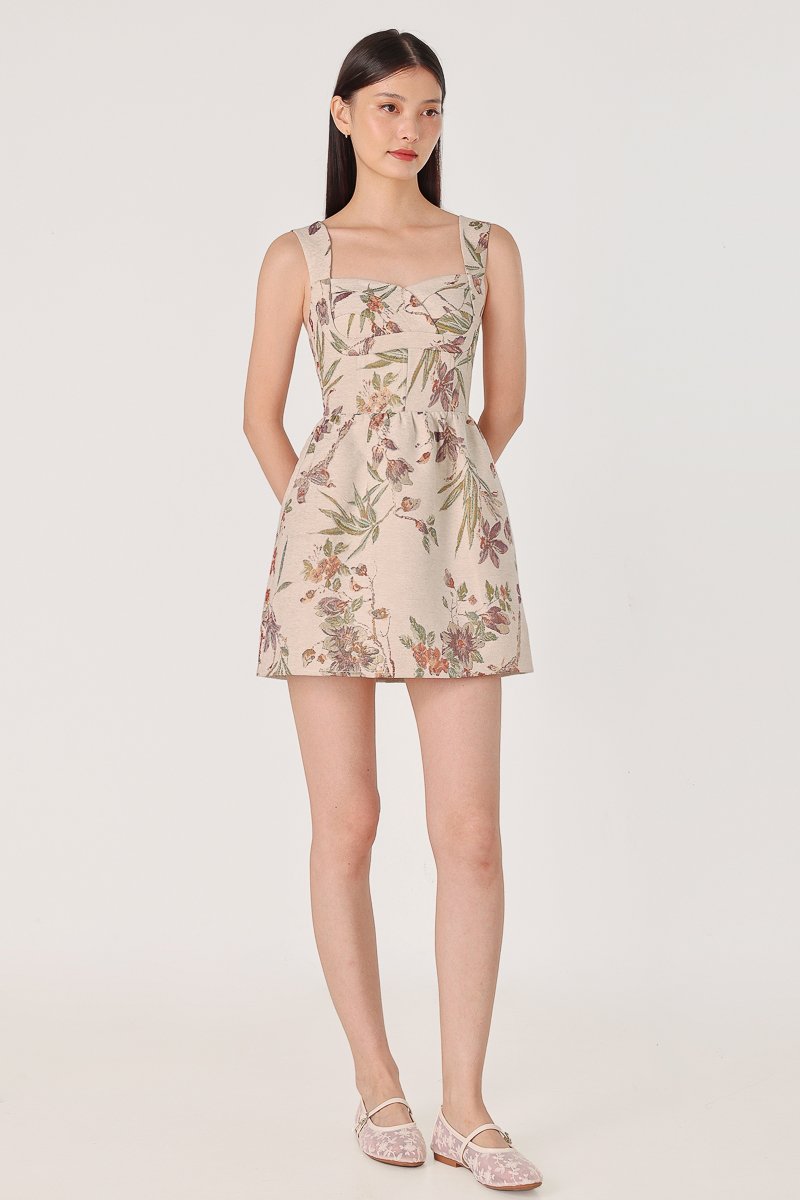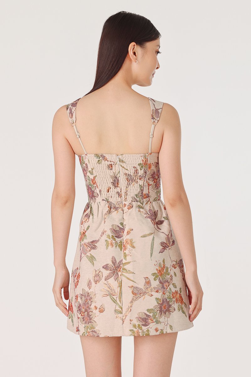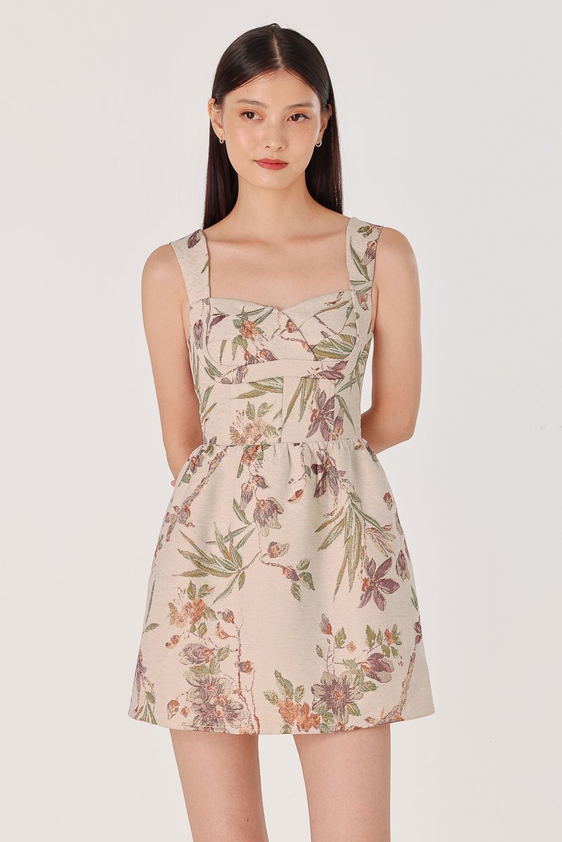 PATRINE PADDED BROCADE FLORAL BUSTIER SKORTS DRESS (CLAY)