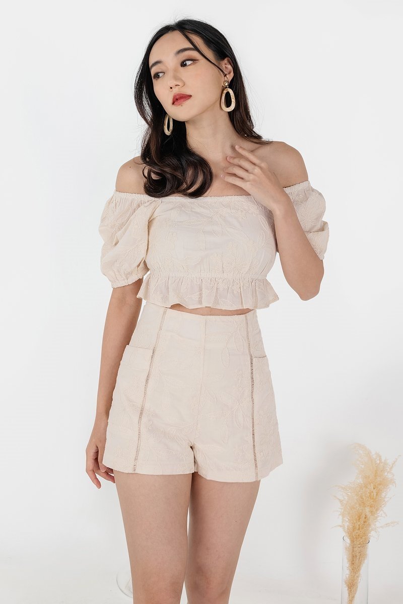 PHYLLIS EMBROIDERY EYELET SHORTS #MADEBYLOVET (COTTON BEIGE)