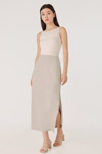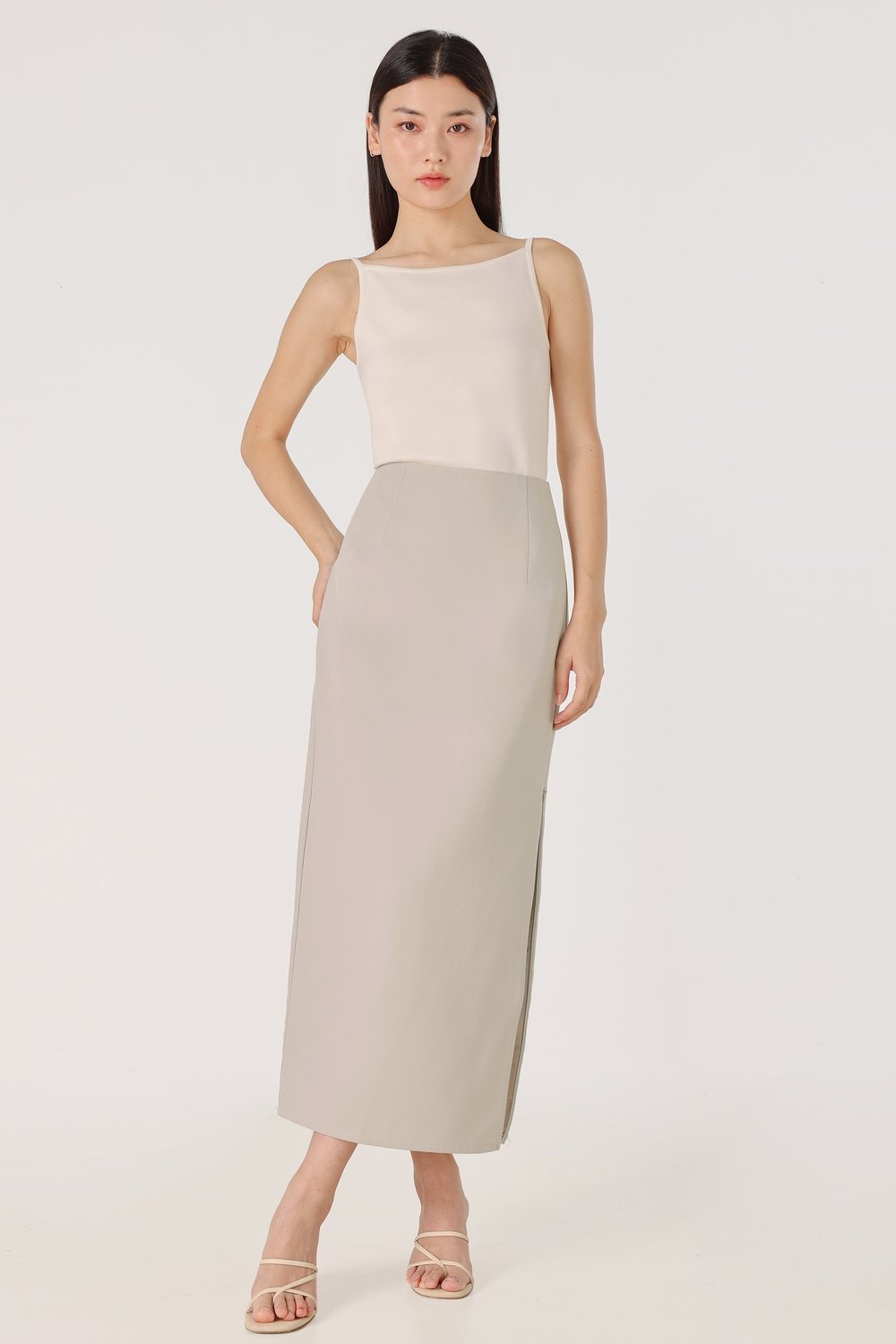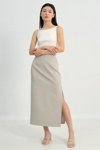 PRESLEY SIDE SLIT COLUMN MAXI SKIRT - PETITE (TAUPE) *BFF*