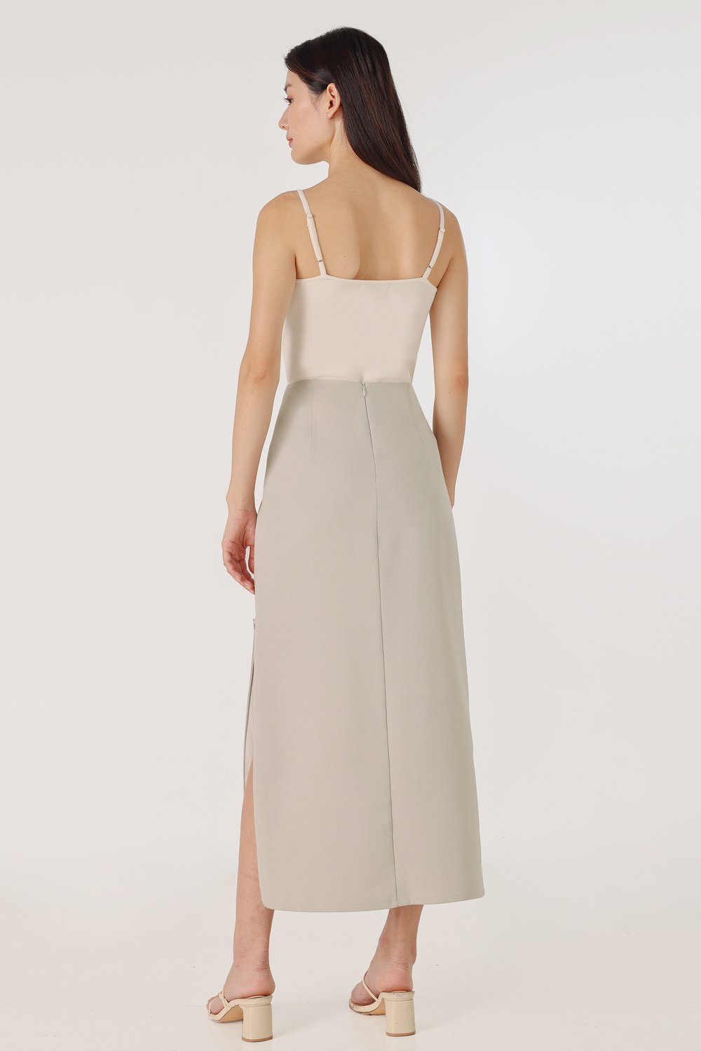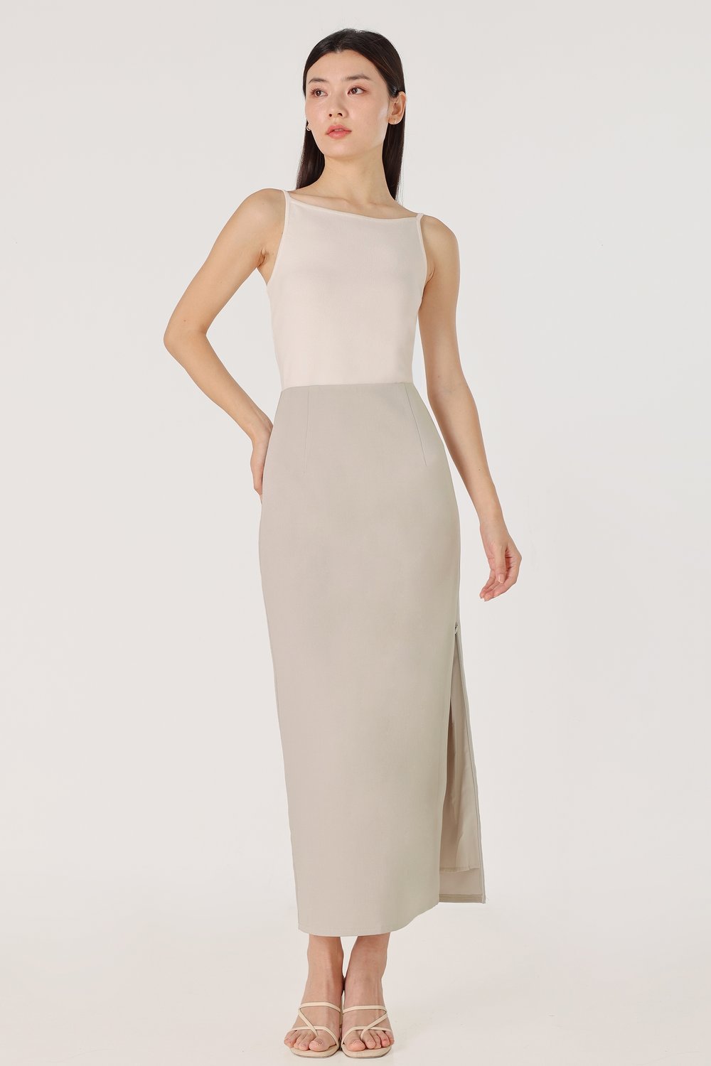 PRESLEY SIDE SLIT COLUMN MAXI SKIRT - REGULAR (TAUPE) *BFF*