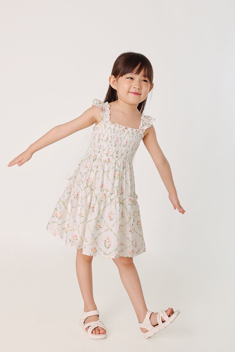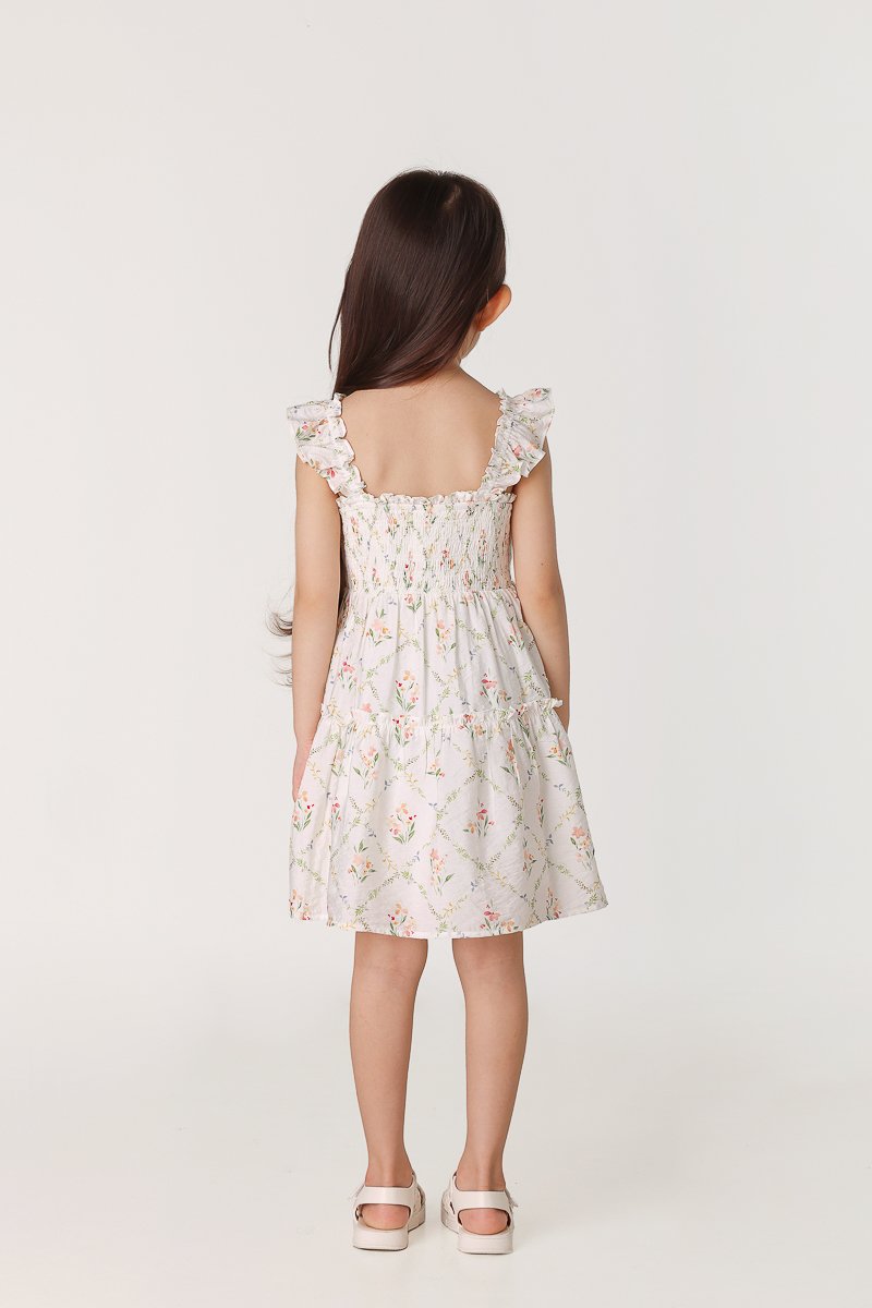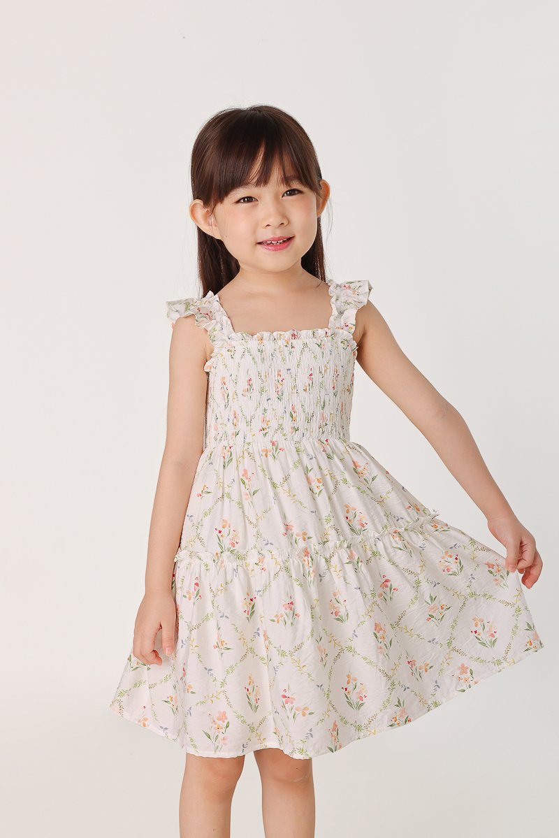 PRIMROSE FLORAL SMOCKED FLARE RUFFLE TIERED DRESS - MINI GIRL