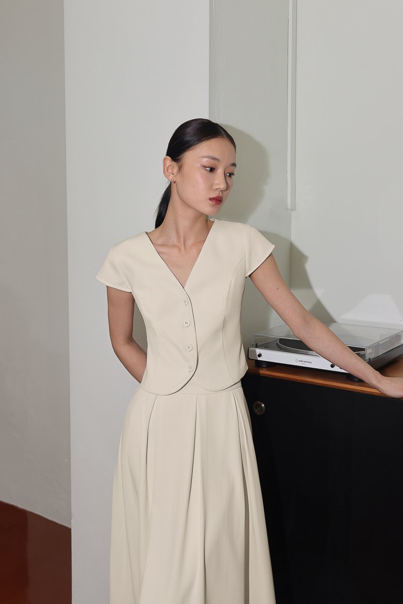 RACHEL CAP SLEEVE BUTTON TOP (CRÈME)