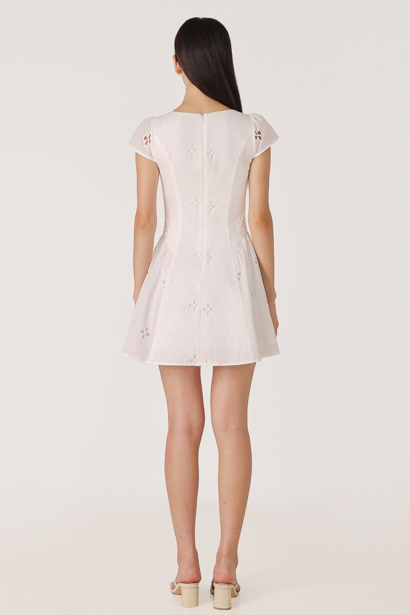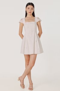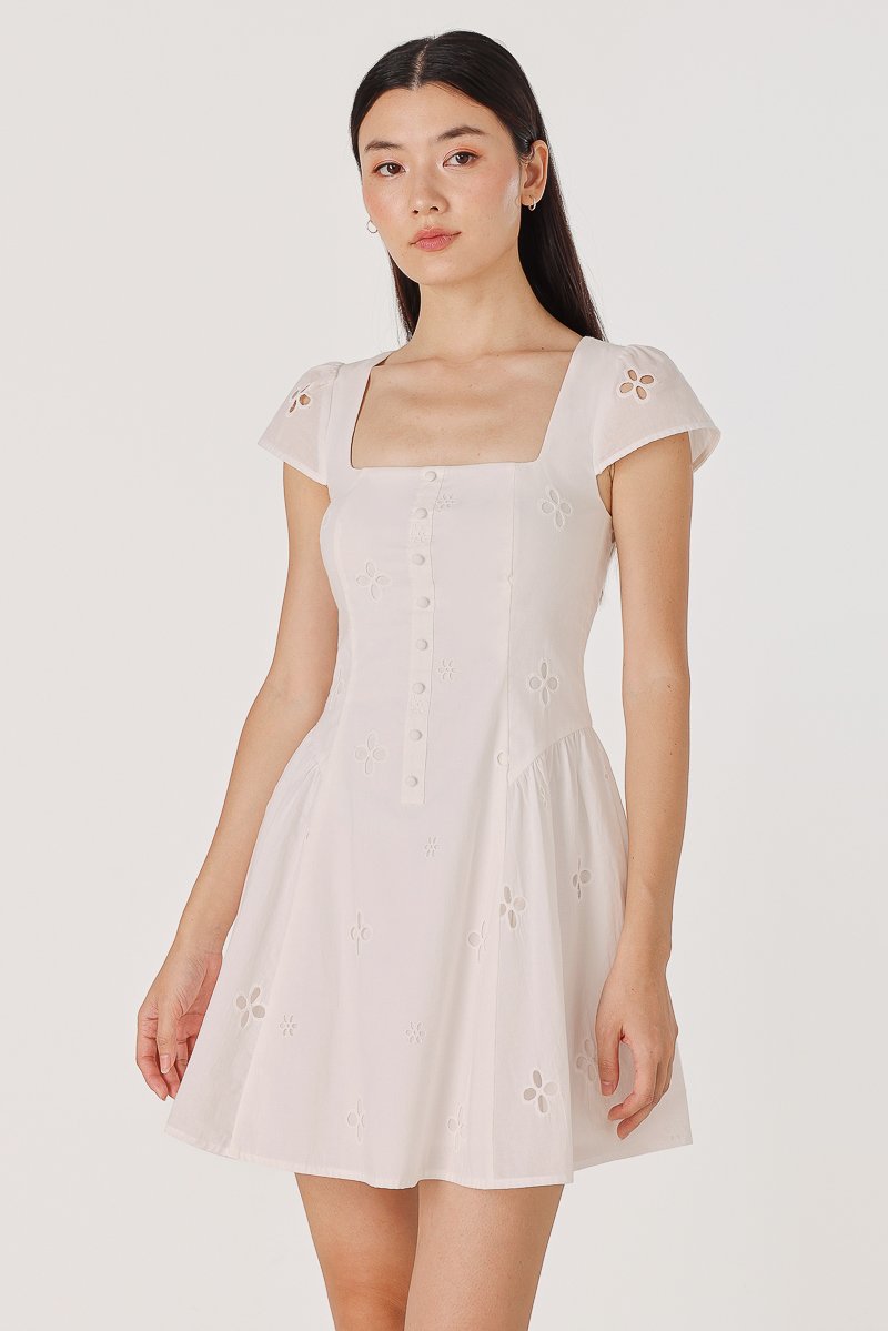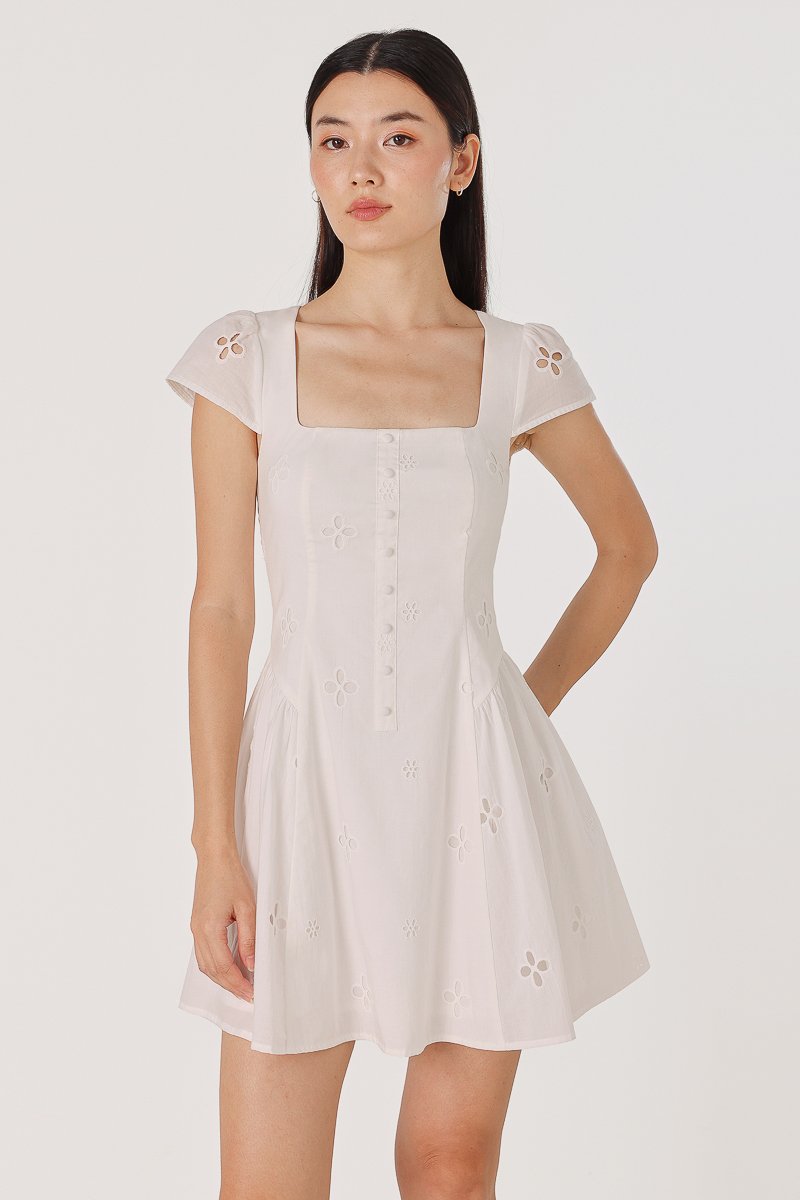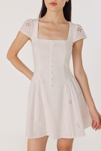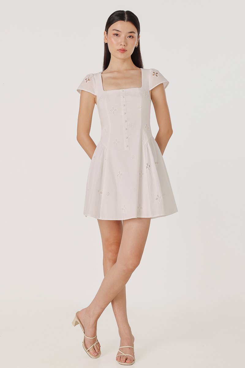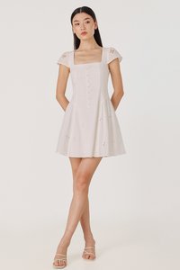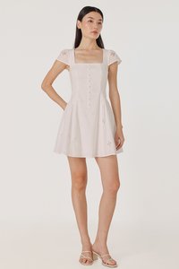 RALEY PADDED CAP SLEEVE BUTTON BASQUE MINI DRESS (EYELET)
