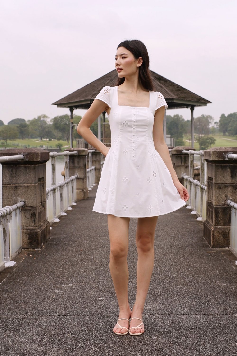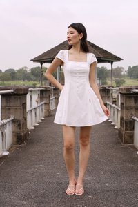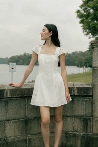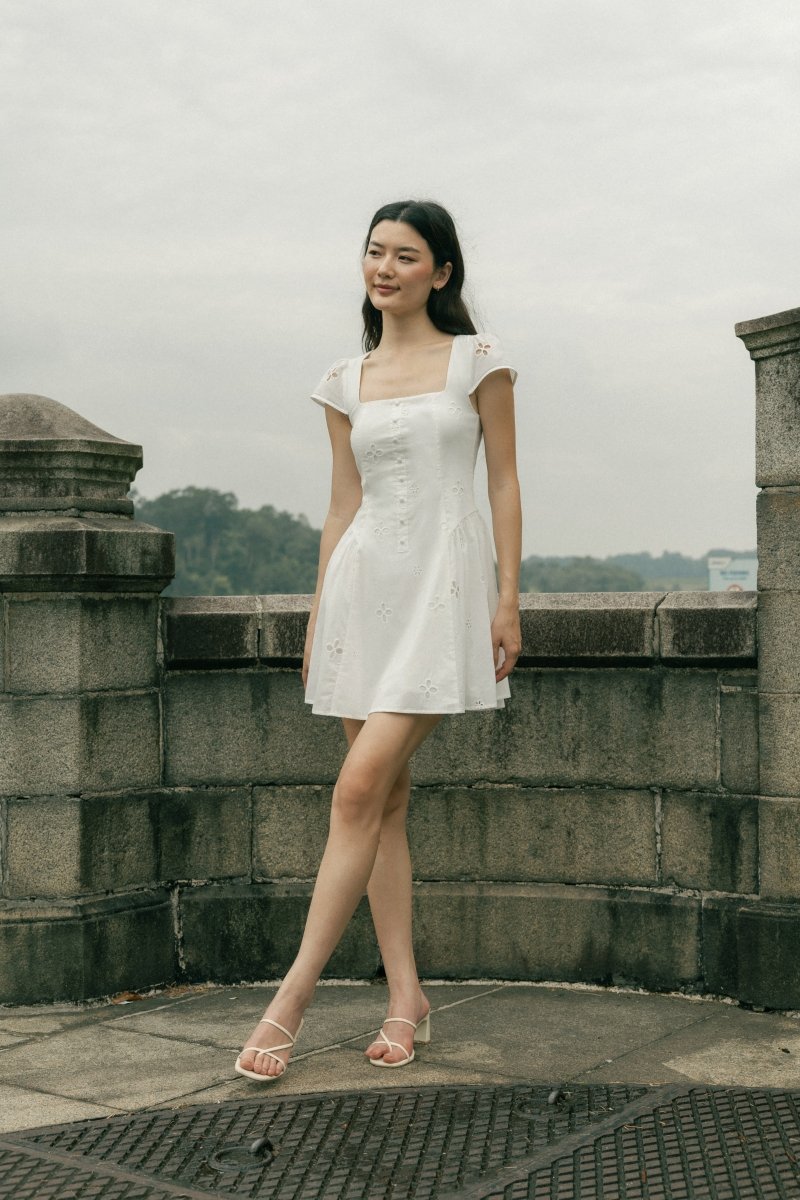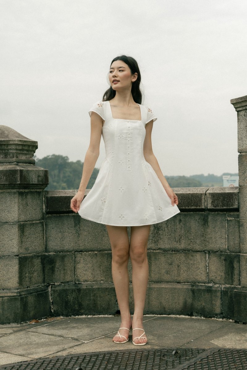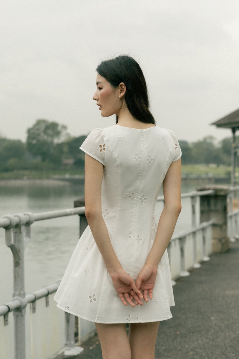 RALEY PADDED CAP SLEEVE BUTTON BASQUE MINI DRESS (EYELET)