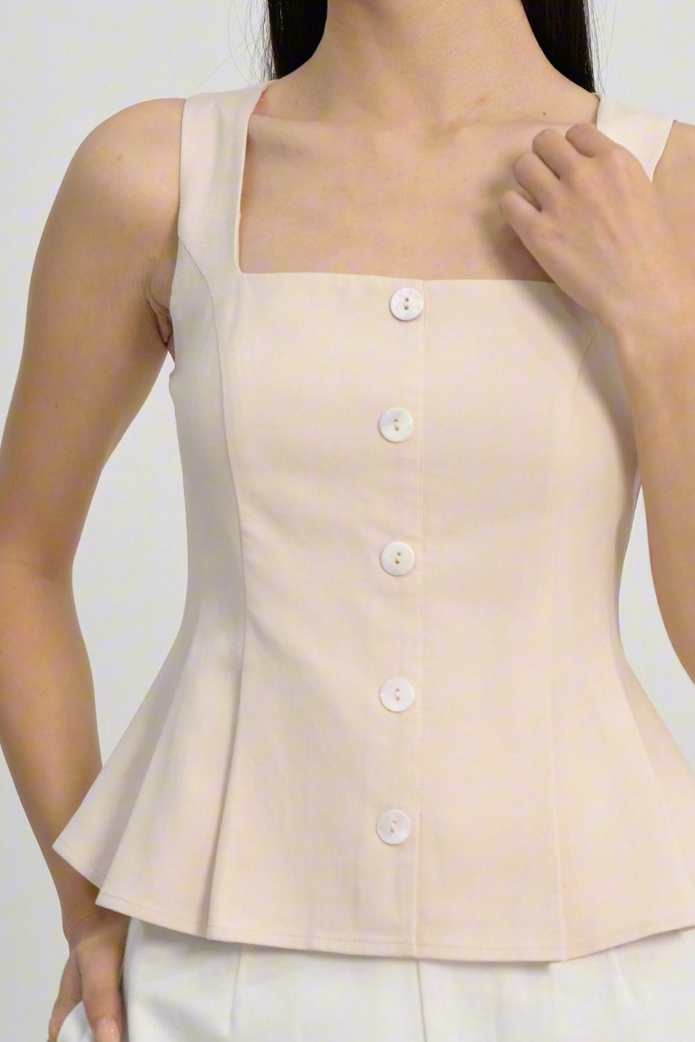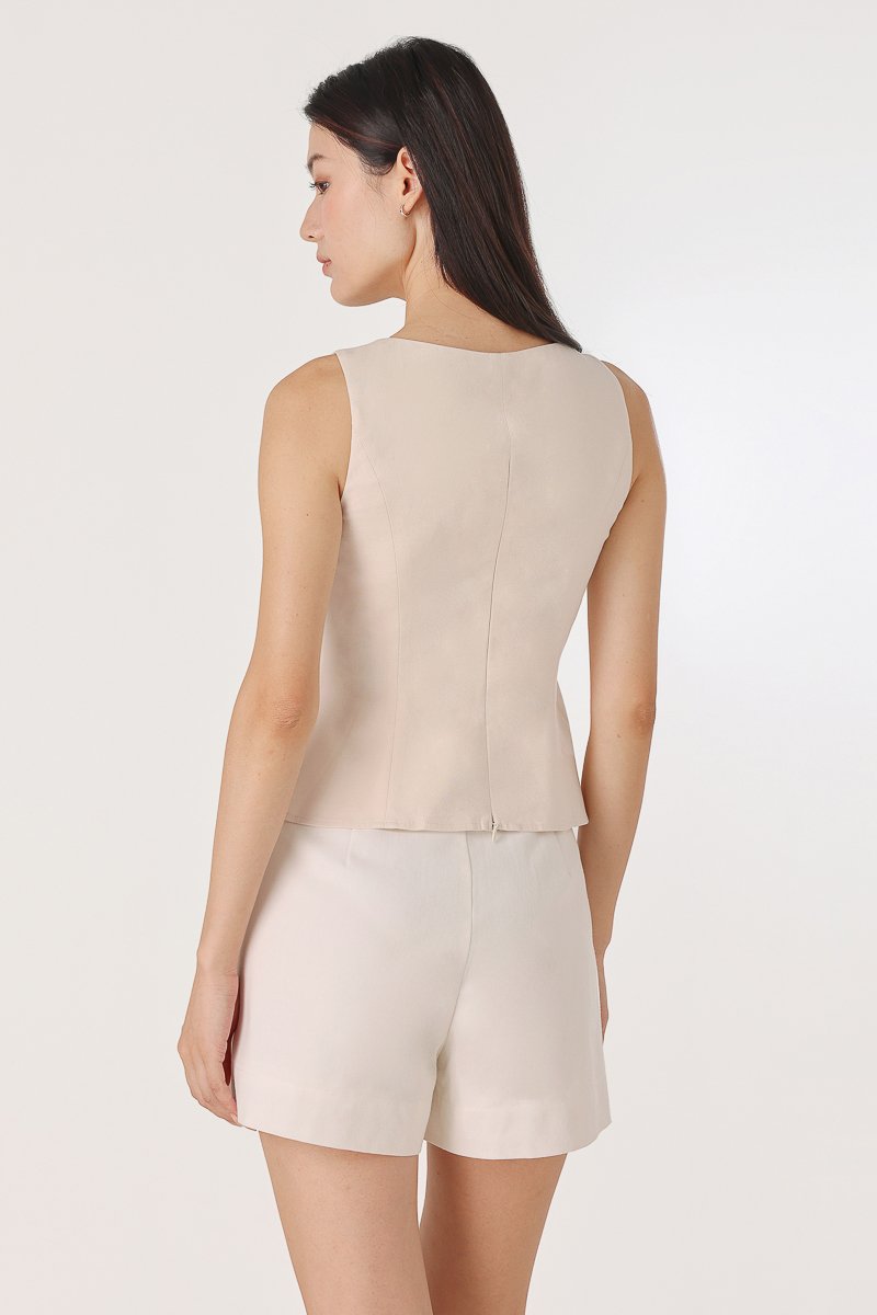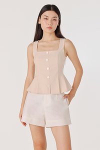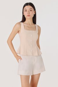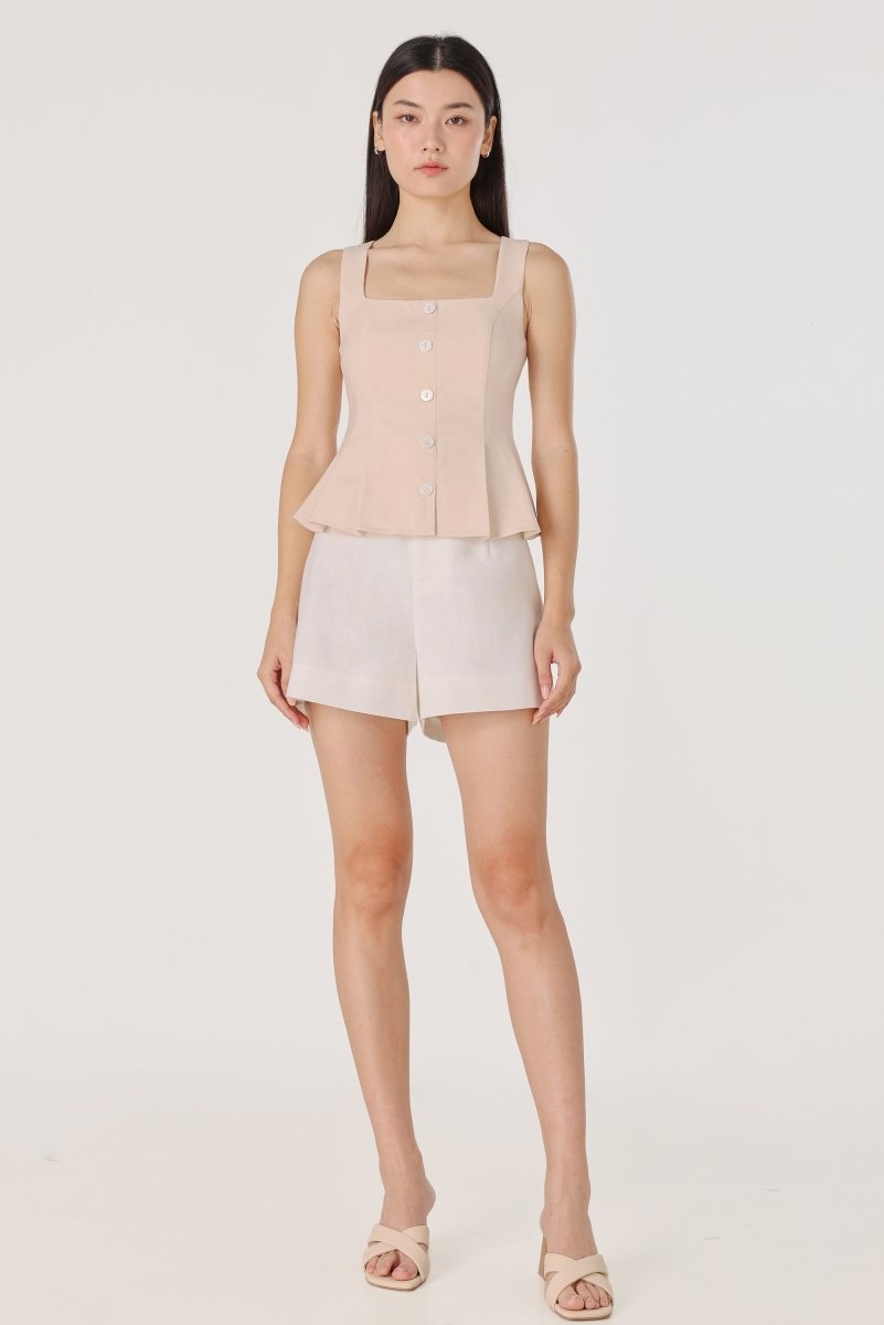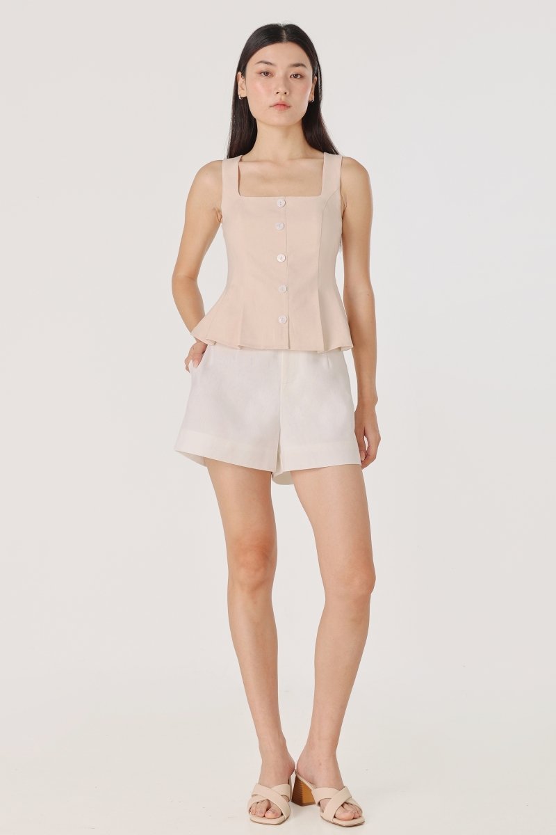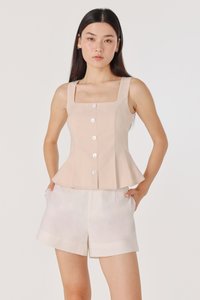 AZLYNN PADDED LINEN SHELL BUTTON PLEATED HEM TOP (OAT)