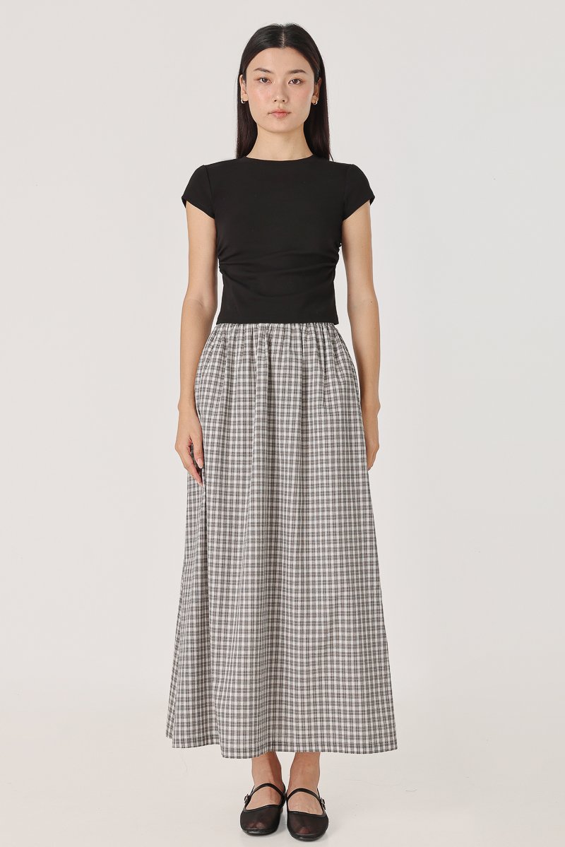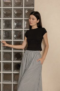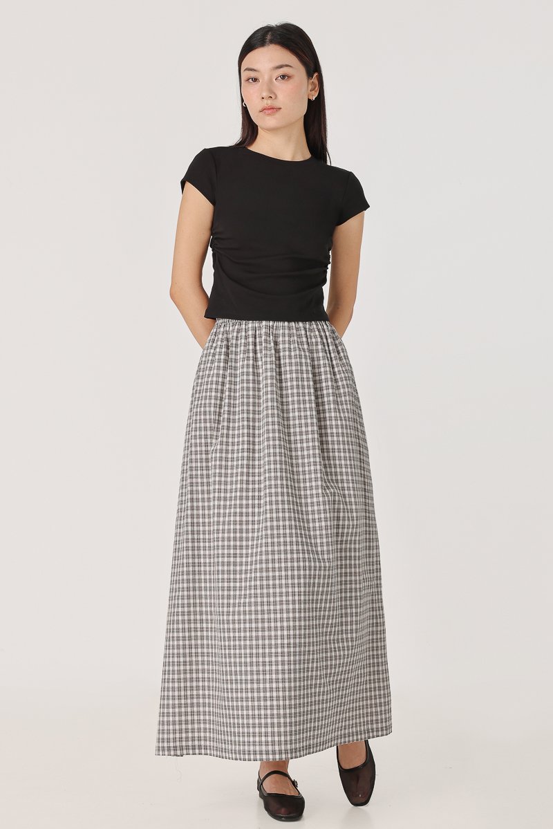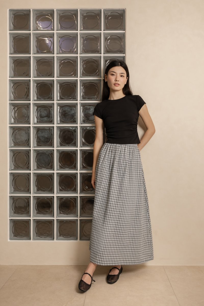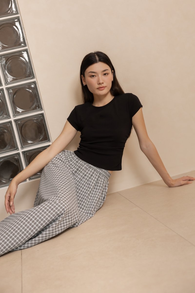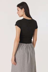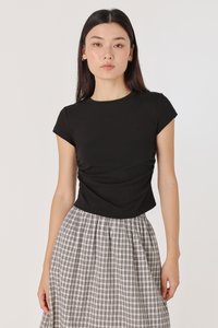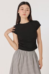 JUNIE SIDE RUCHED CREW NECK TEE (BLACK)