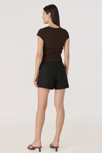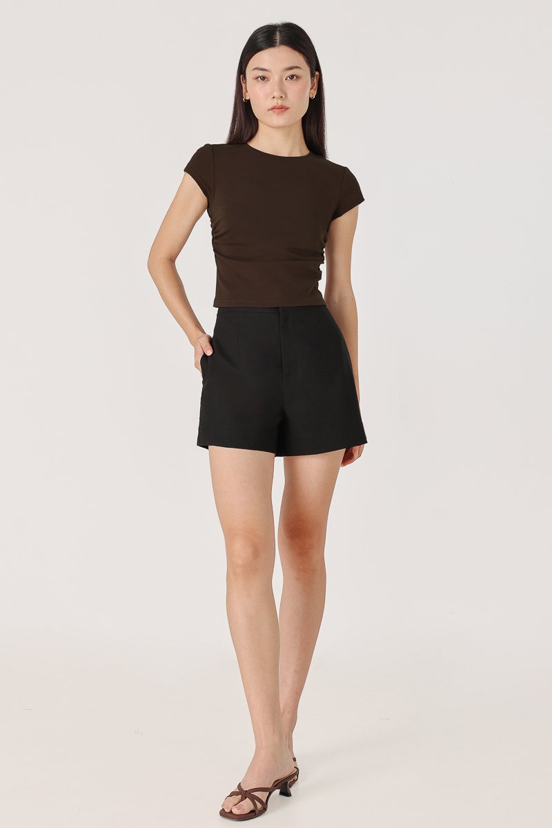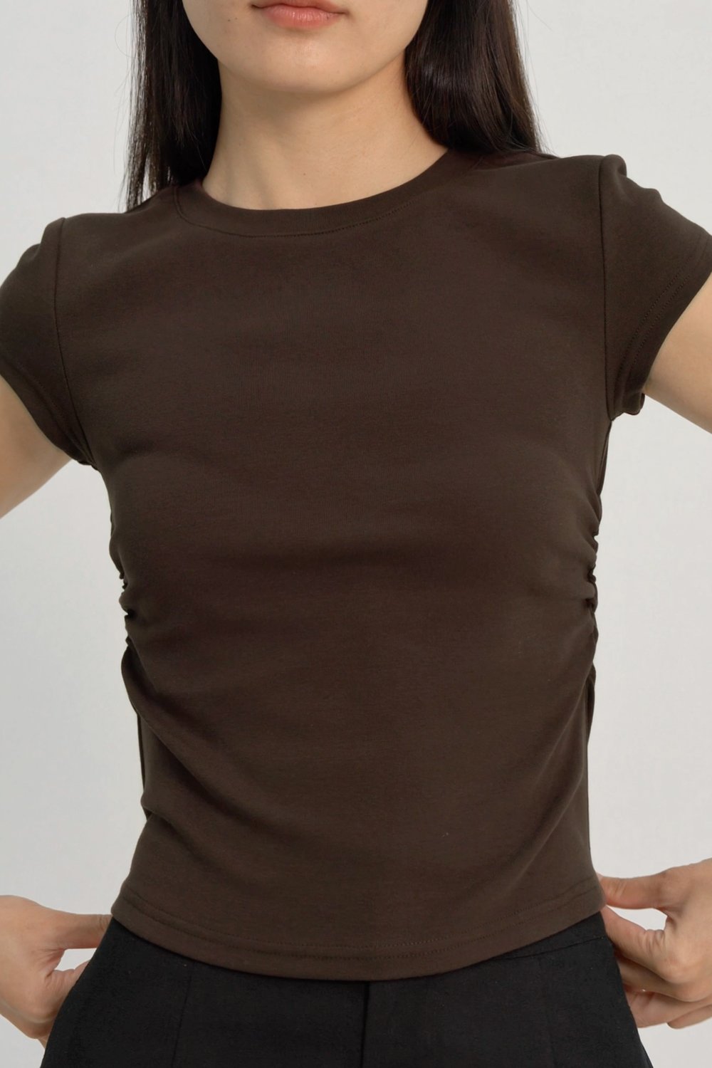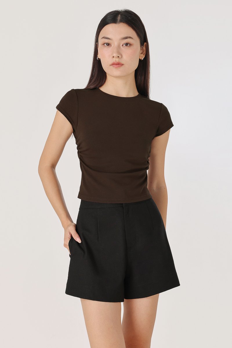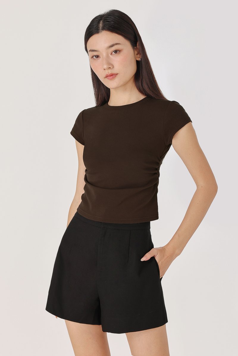 JUNIE SIDE RUCHED CREW NECK TEE (BROWN)
