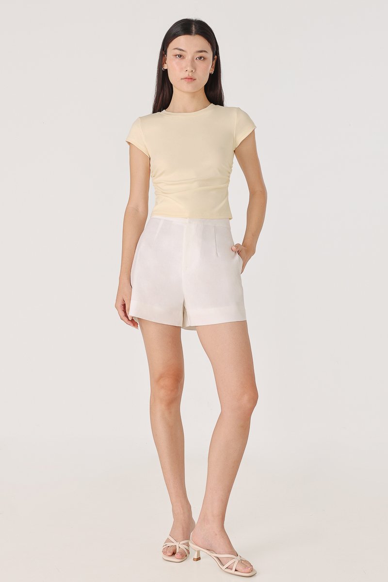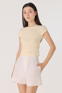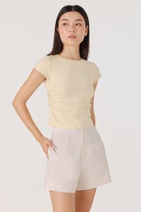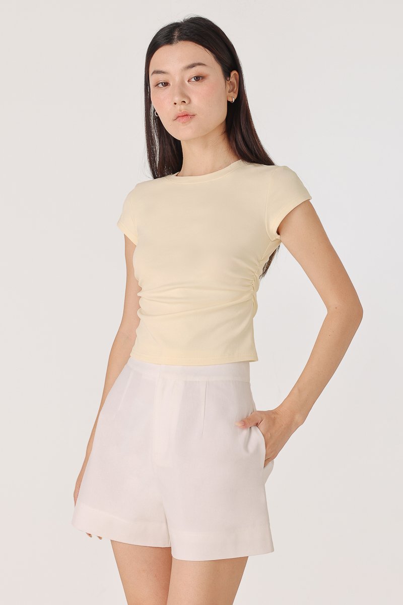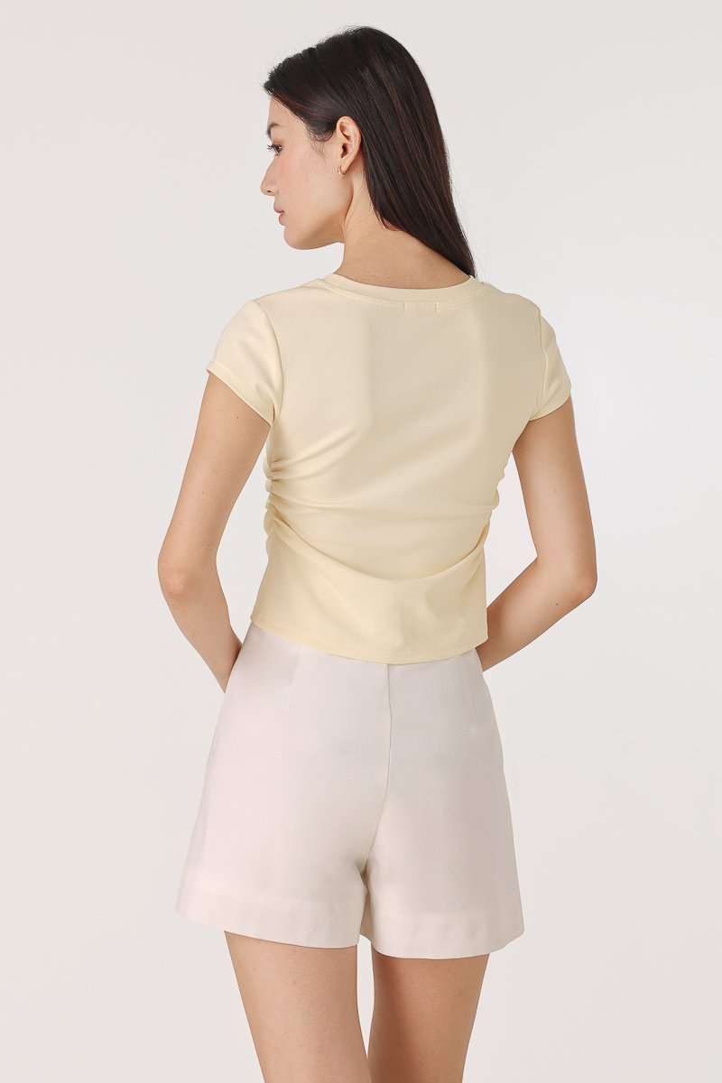 JUNIE SIDE RUCHED CREW NECK TEE (YELLOW)