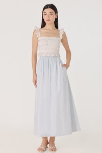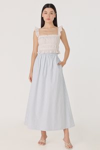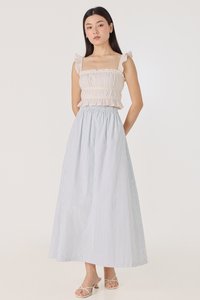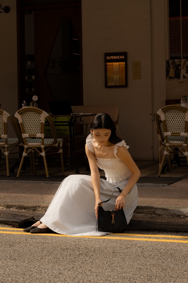 Gentle femininity meets thoughtful details. Hadley is made from linen blend, featuring soft flutter sleeves that move gracefully with every step. She showcases delicate ruching details around the waist area, creating a flattering shape, along with elastic shoulder straps that offer secured comfort. Completed with removable padding and a concealed back zipper for a clean finish. Pair it with a skirt or pants for a refined look that blends charm and timeless elegance.