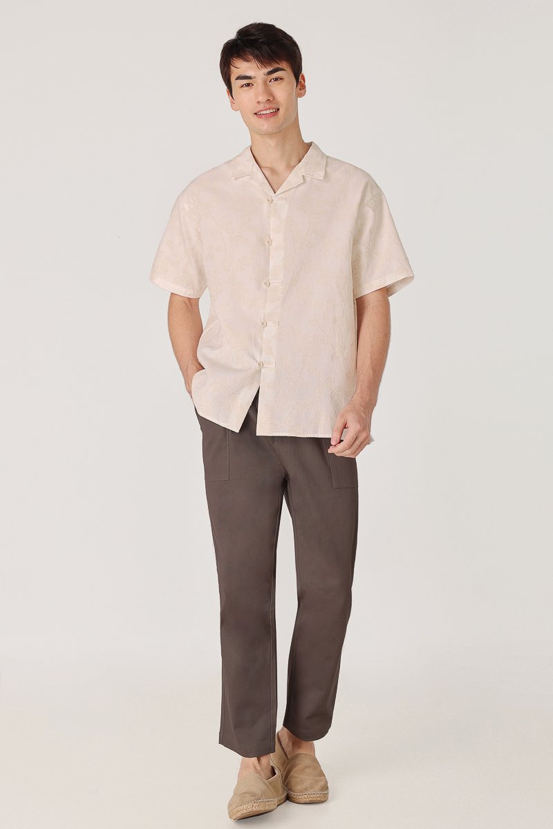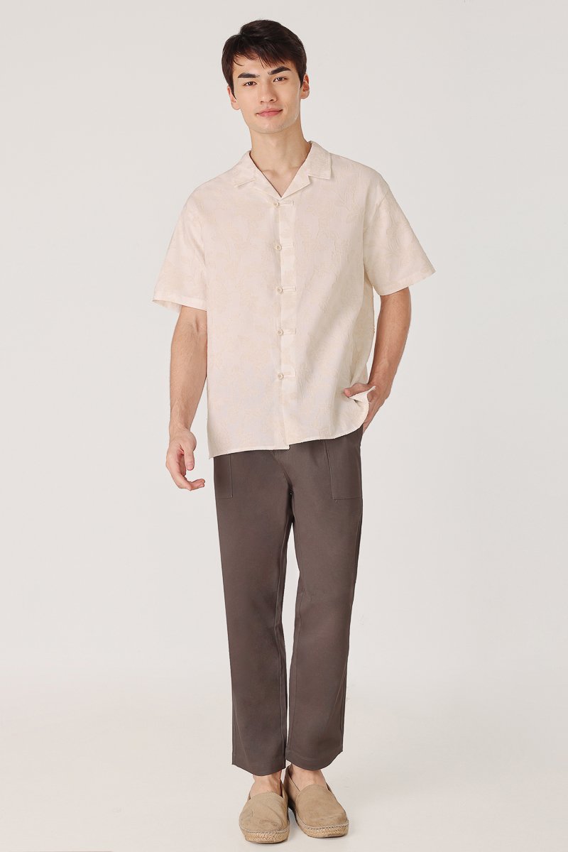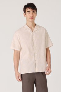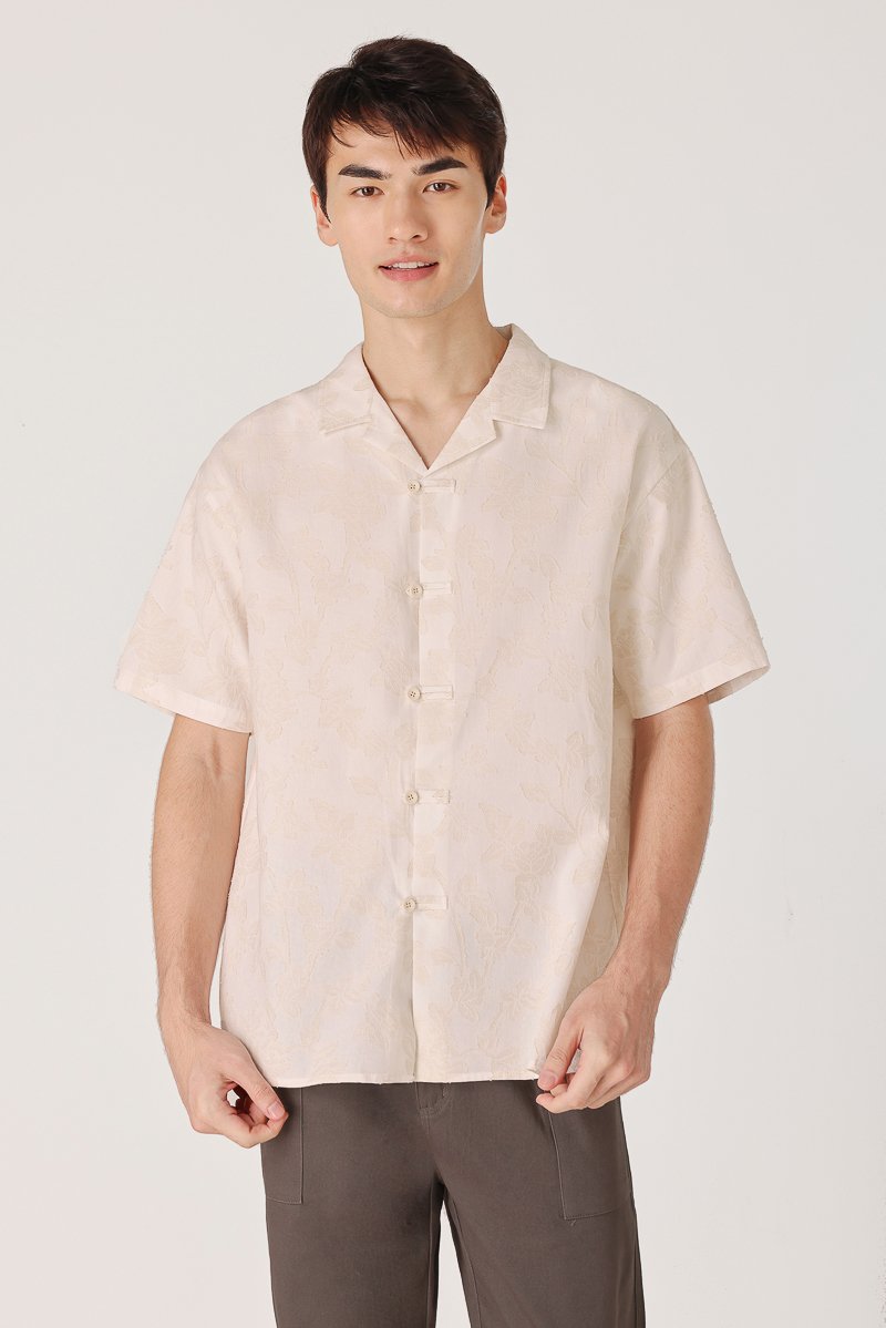 RION FLORAL JACQUARD REVERE COLLAR MANDARIN BUTTON SHIRT