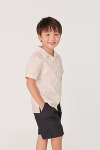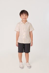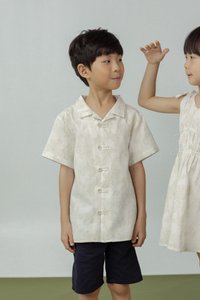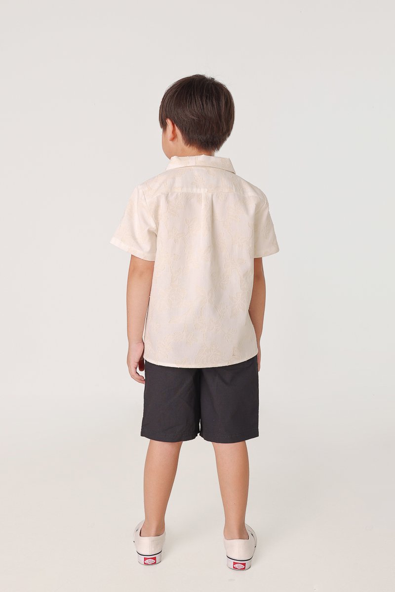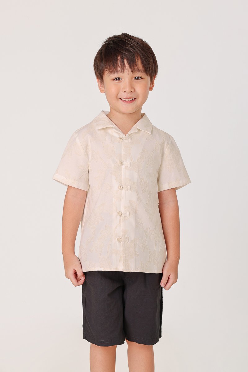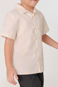 RION FLORAL JACQUARD REVERE COLLAR MANDARIN BUTTON SHIRT - MINI BOY
