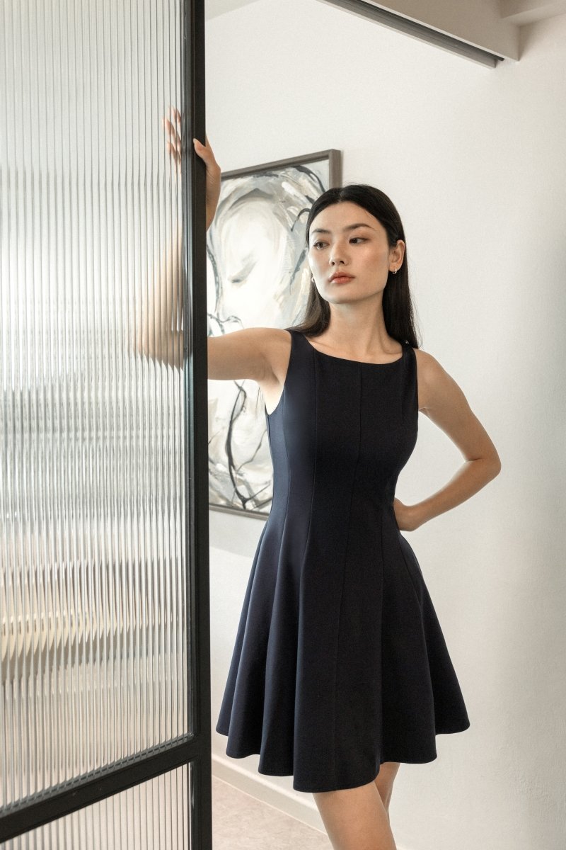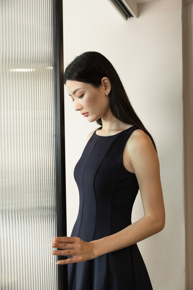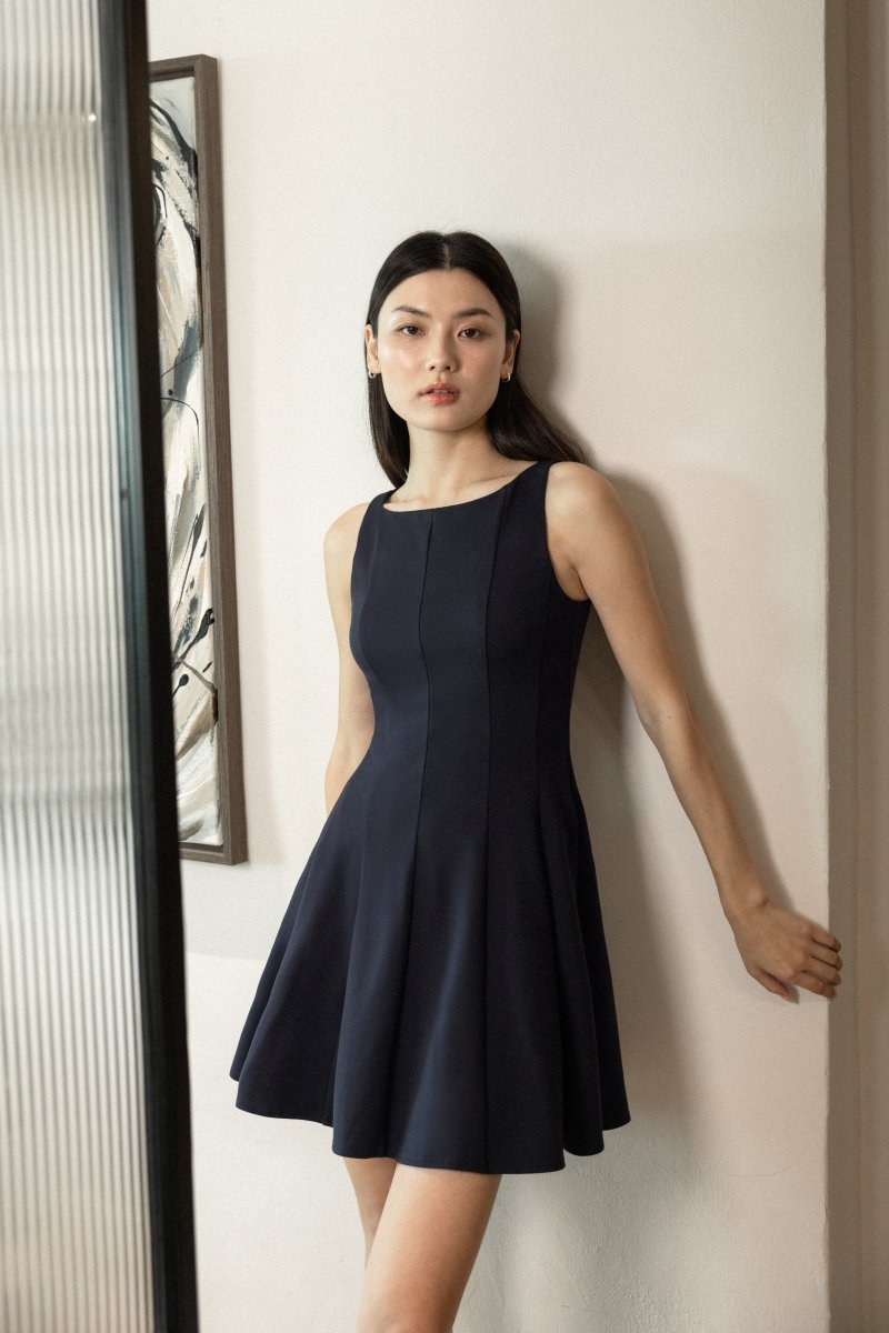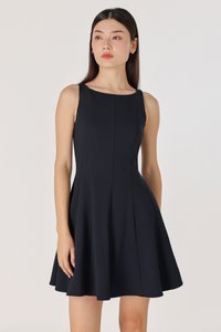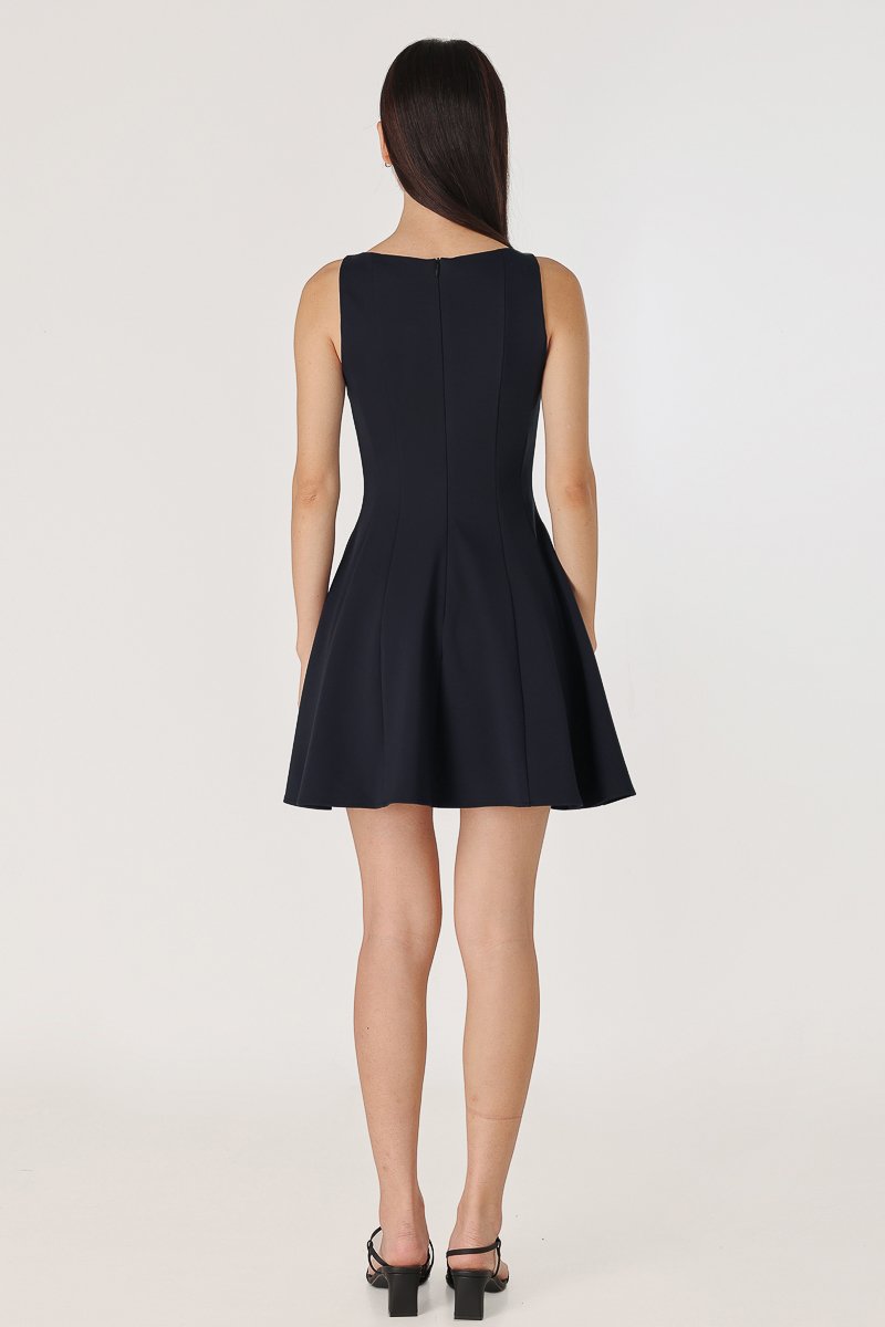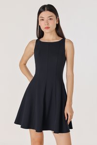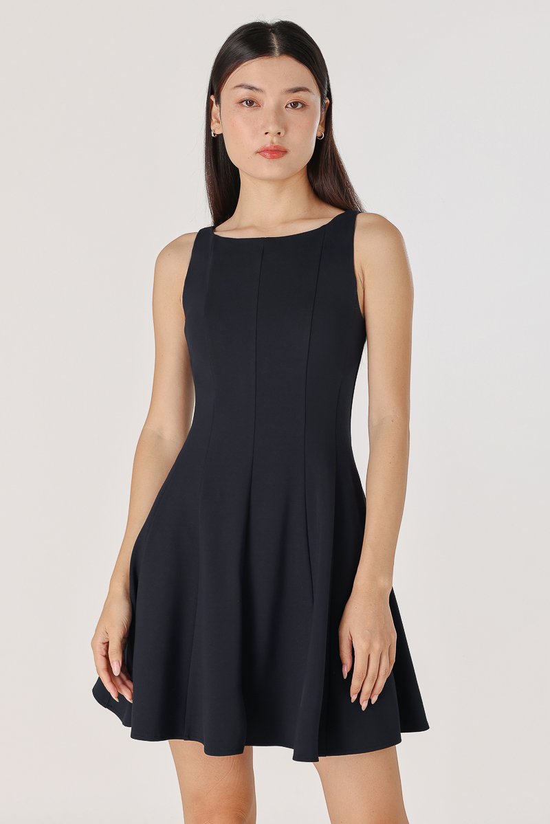 ROMANA PADDED BOATNECK PANELLED DRESS (MIDNIGHT)