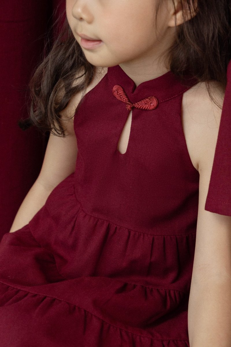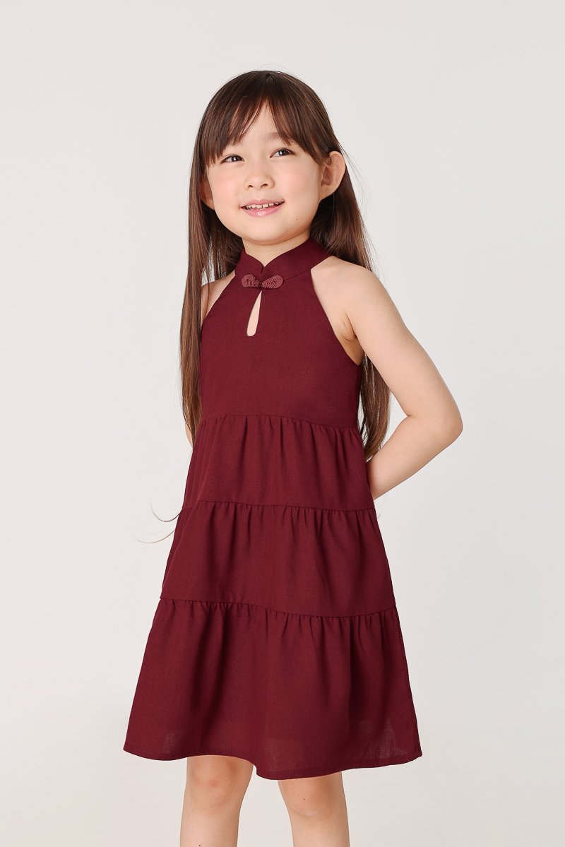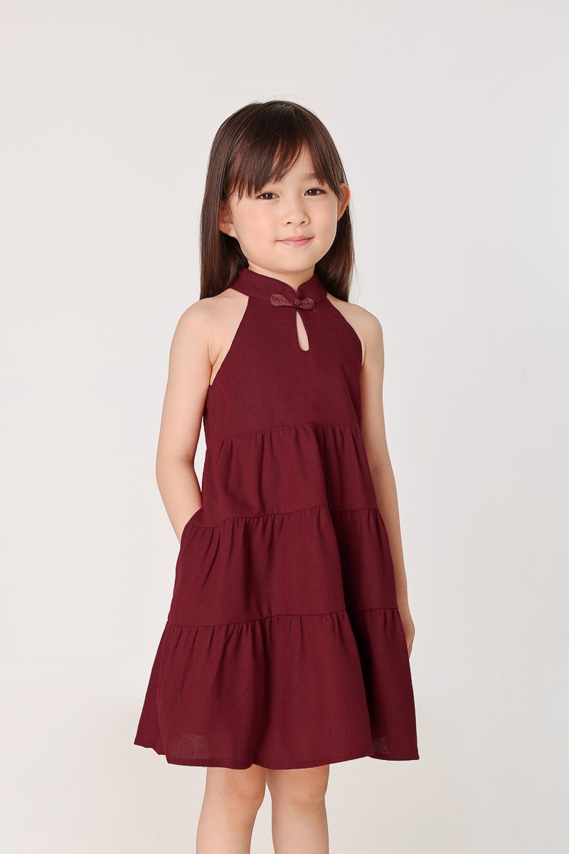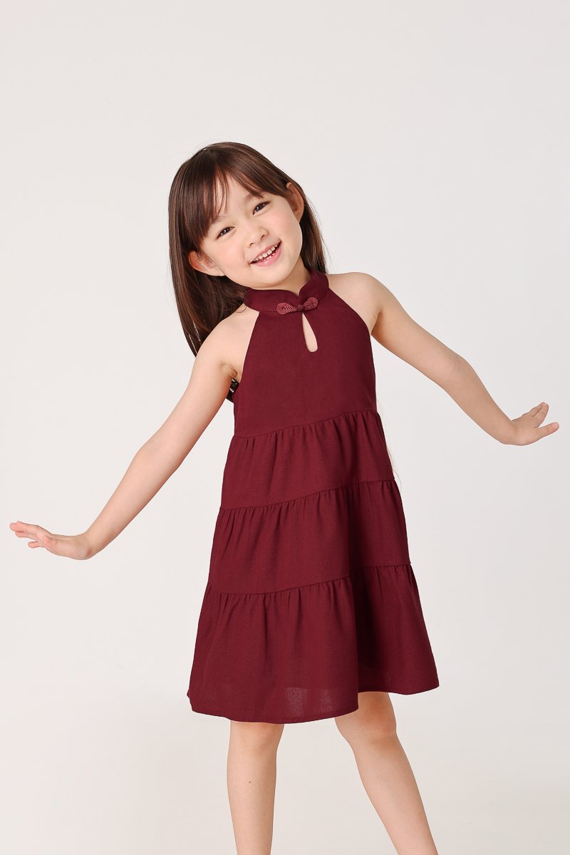 ROMONA LINEN MANDARIN BUTTON KEYHOLE BABYDOLL DRESS - MINI GIRL