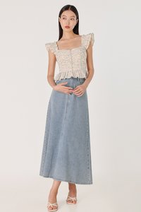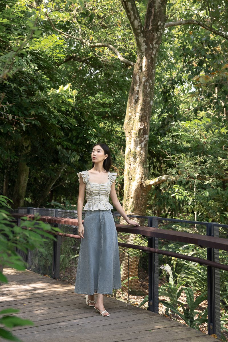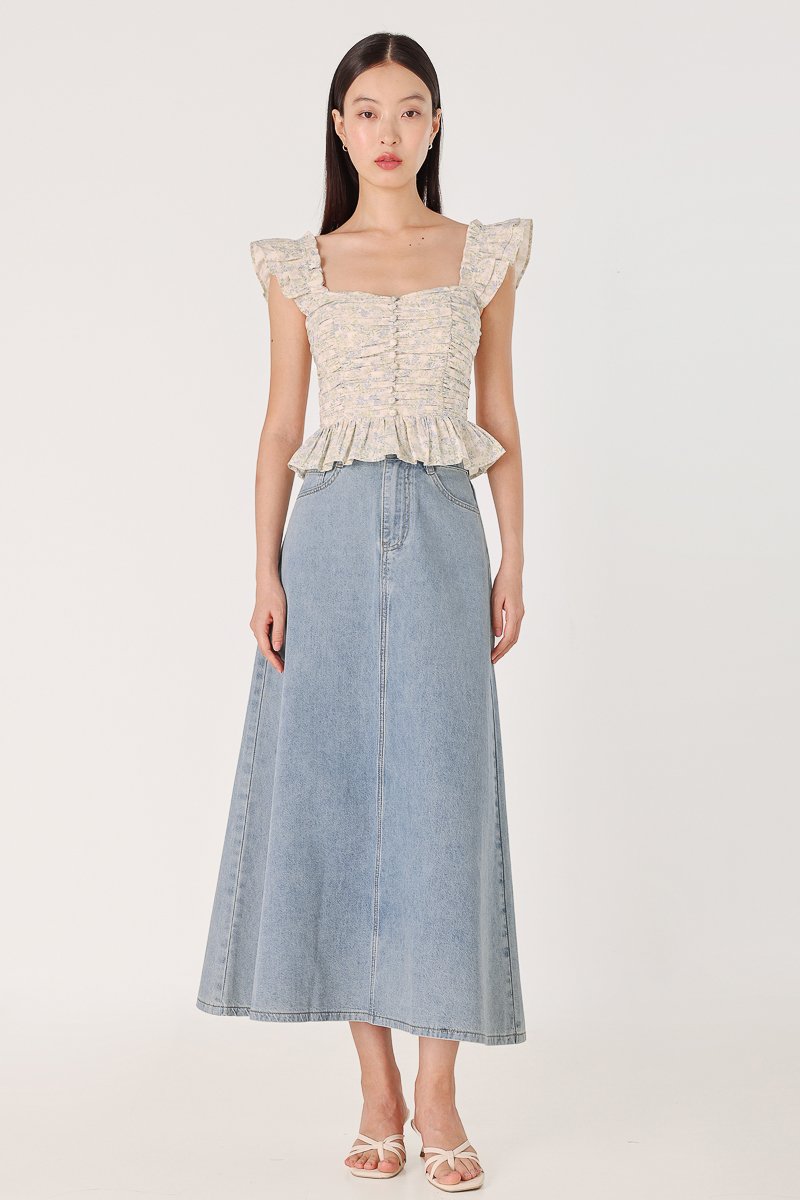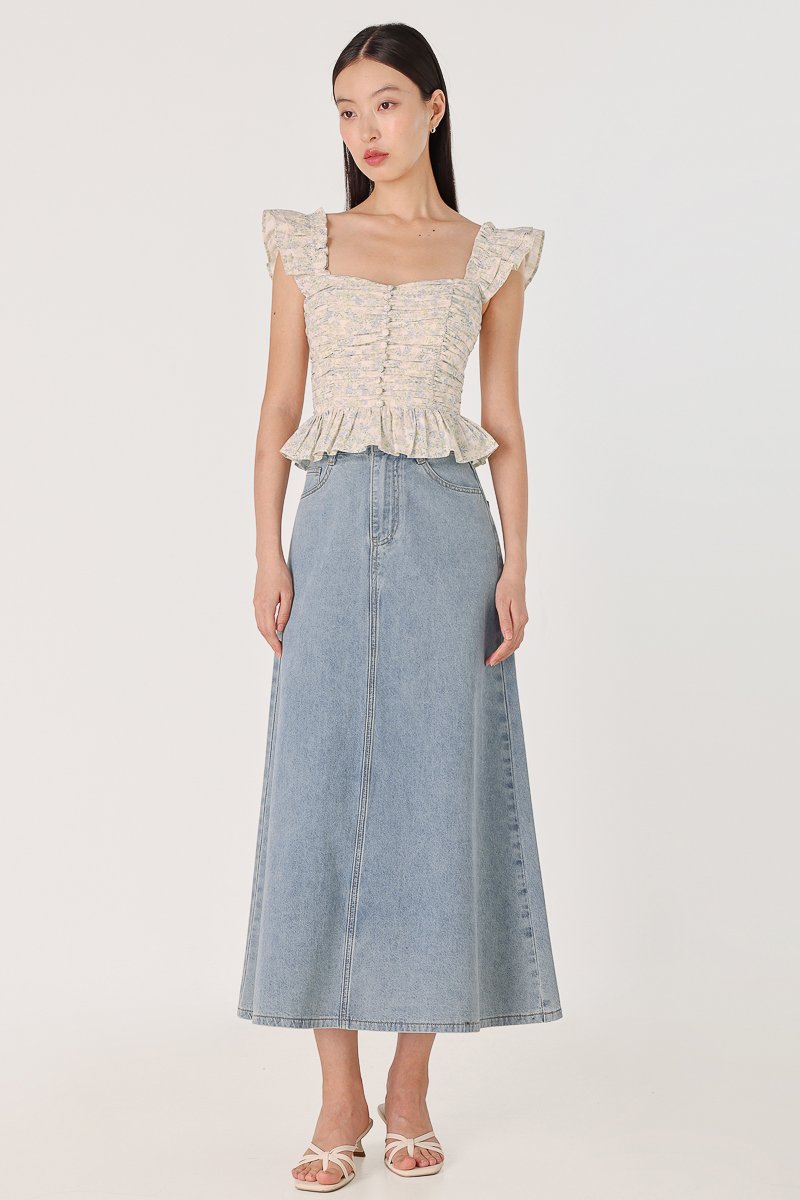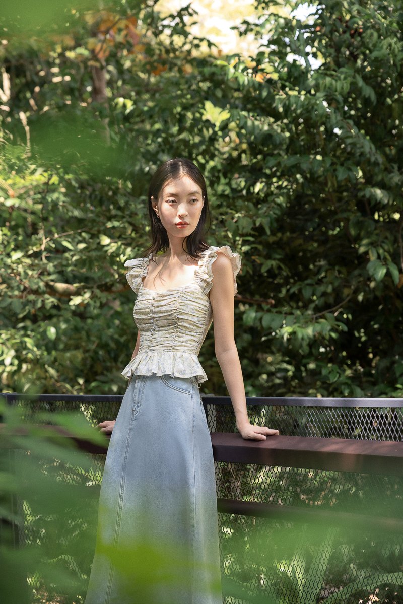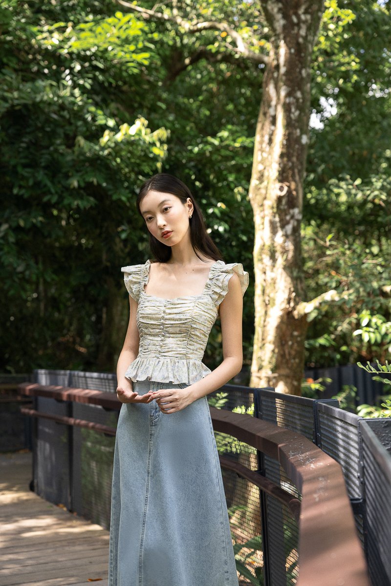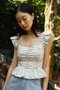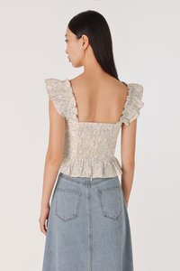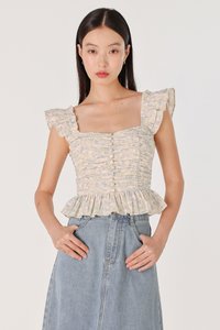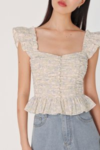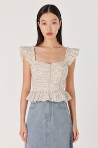 ROSETTA PADDED RUCHED RUFFLE STRAP BUTTON TOP (FLORAL)