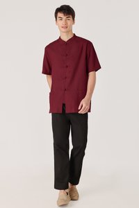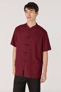 RYKER LINEN MANDARIN COLLAR BUTTON POCKET SHIRT