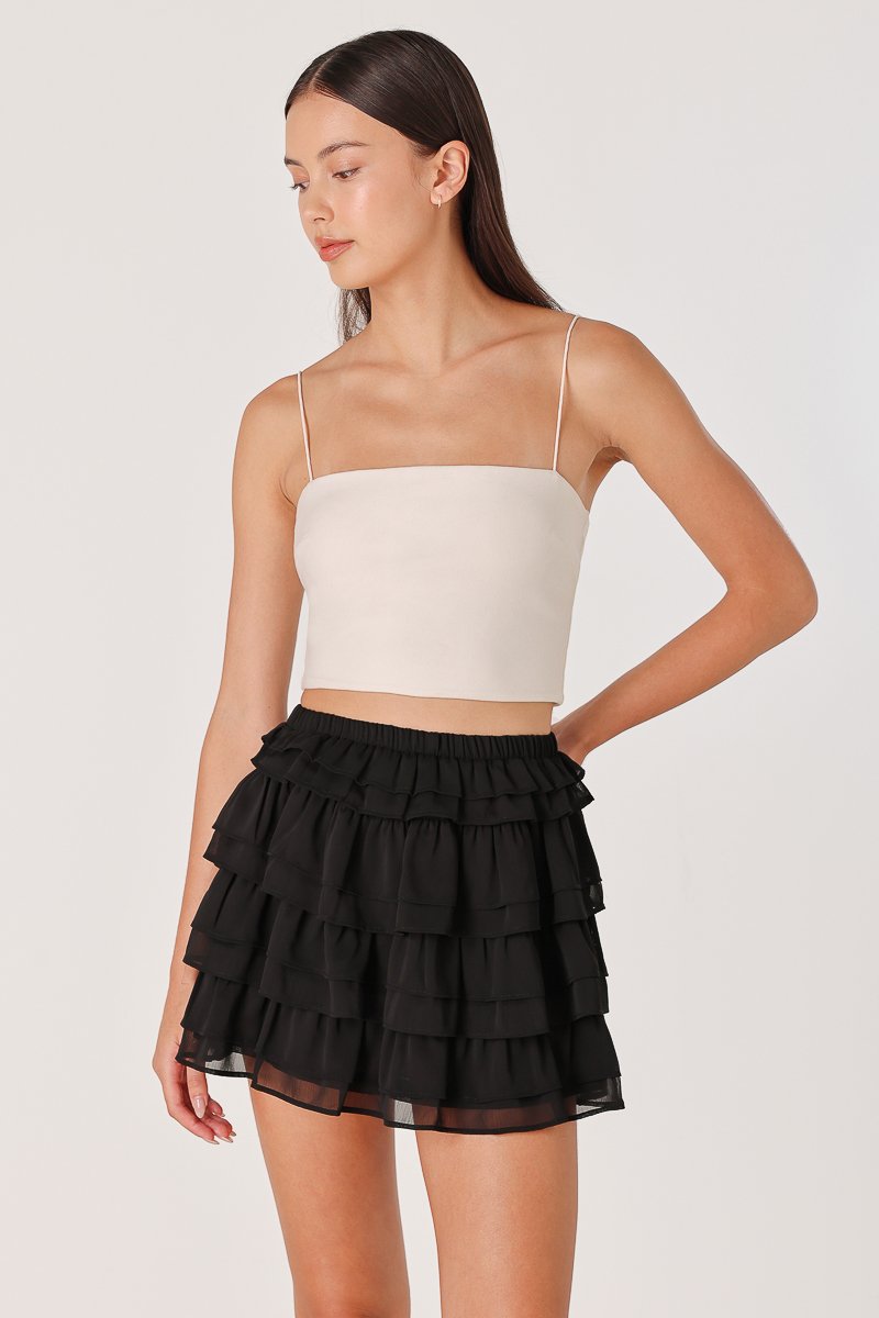 RYNN CHIFFON RUFFLE SKORTS (BLACK)