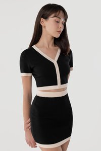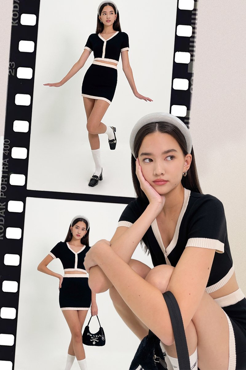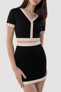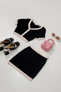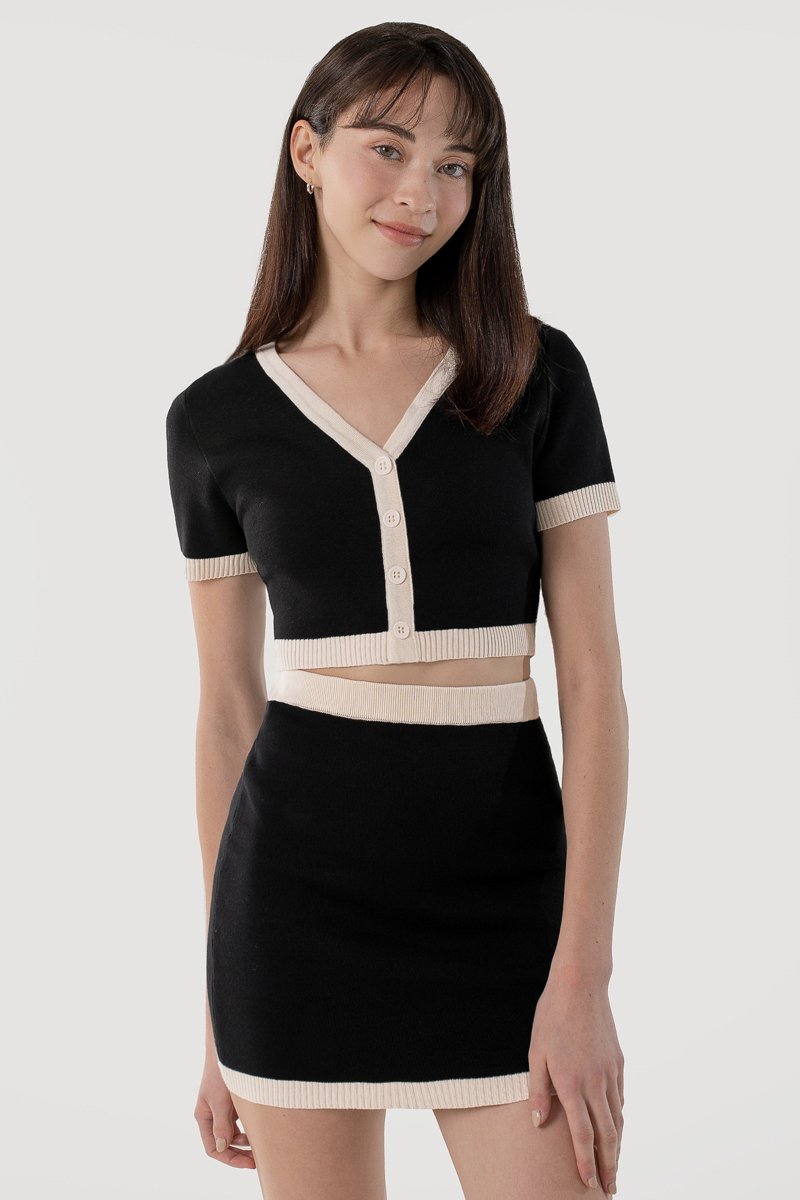 SABBY CONTRAST KNIT BUTTON TOP 2-PIECE SET #MADEBYLOVET (BLACK) *RESTOCKED*