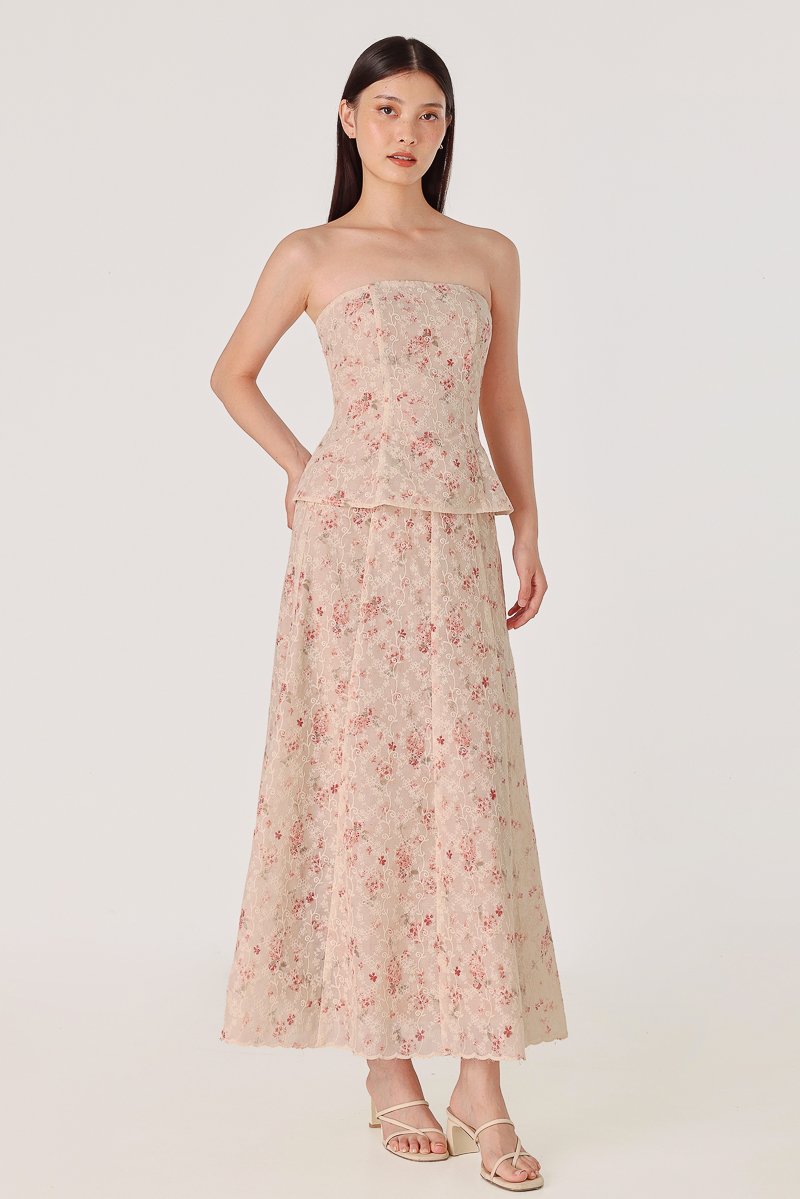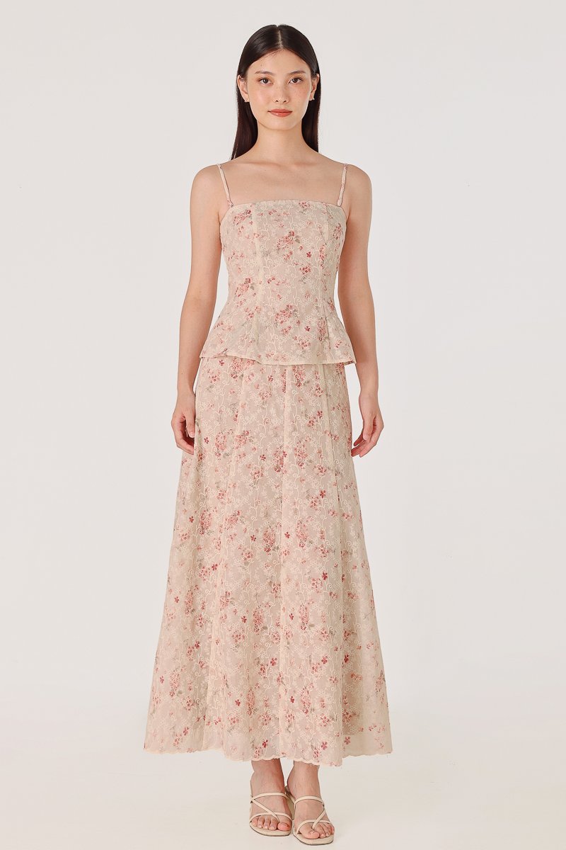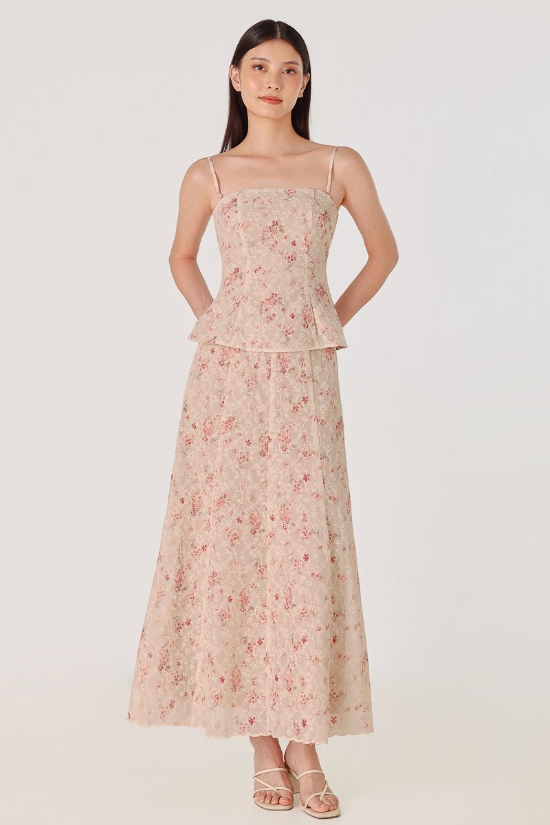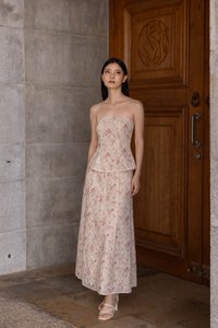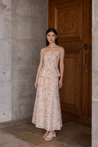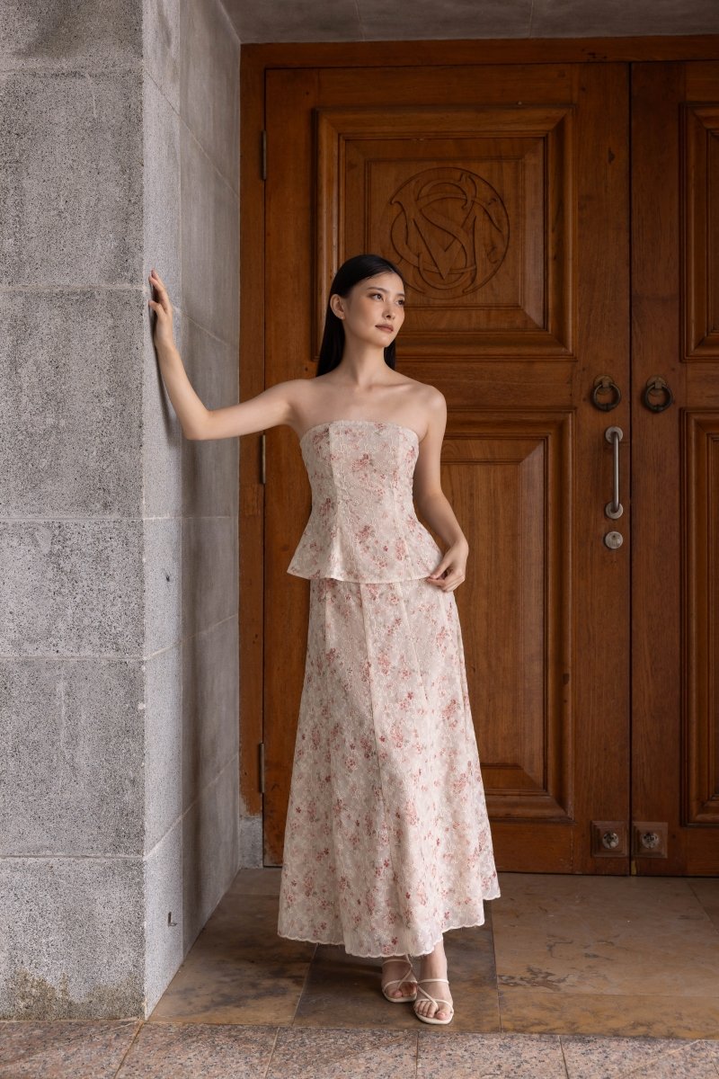 Enjoy 10% off per set if you purchase both Sakura Padded Floral Embroidered Two-Way Top (in any size) & Sakura Floral Embroidered Maxi Skirt (in any size).