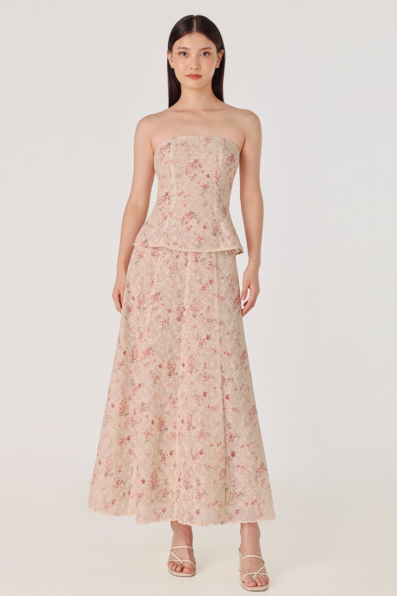 SAKURA FLORAL EMBROIDERED SKIRT SET