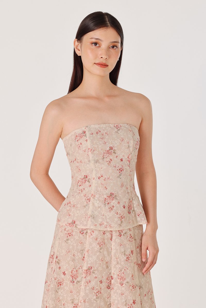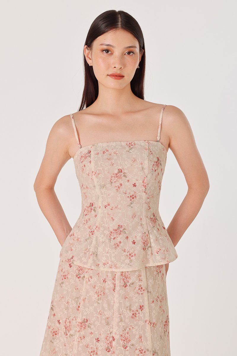SAKURA PADDED FLORAL EMBROIDERED TWO-WAY TOP